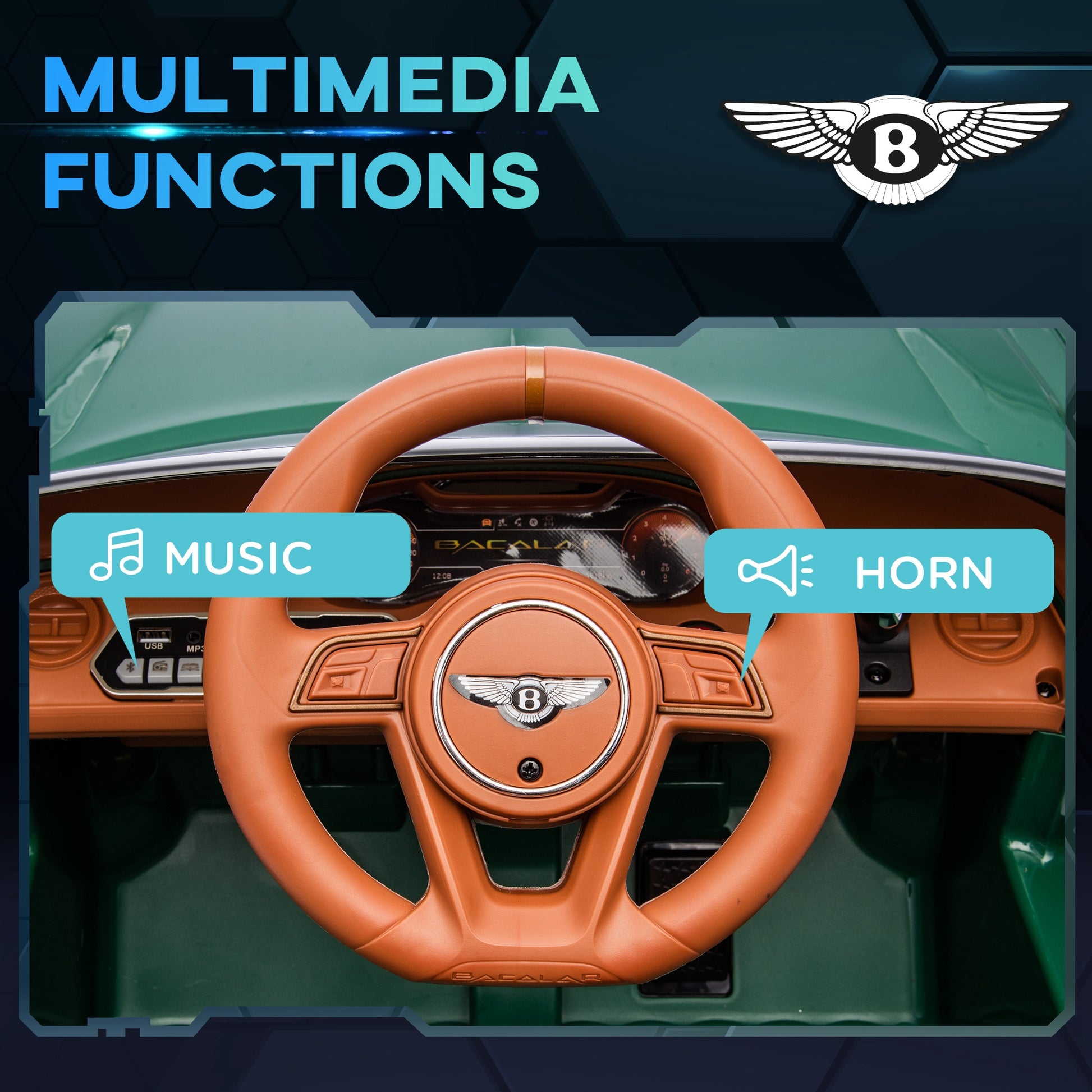 HOMCOM Bentley Bacalar Licensed 12V Kids Electric Car, with Remote Control, Horn, Lights, Music, Suspension Wheels, Green