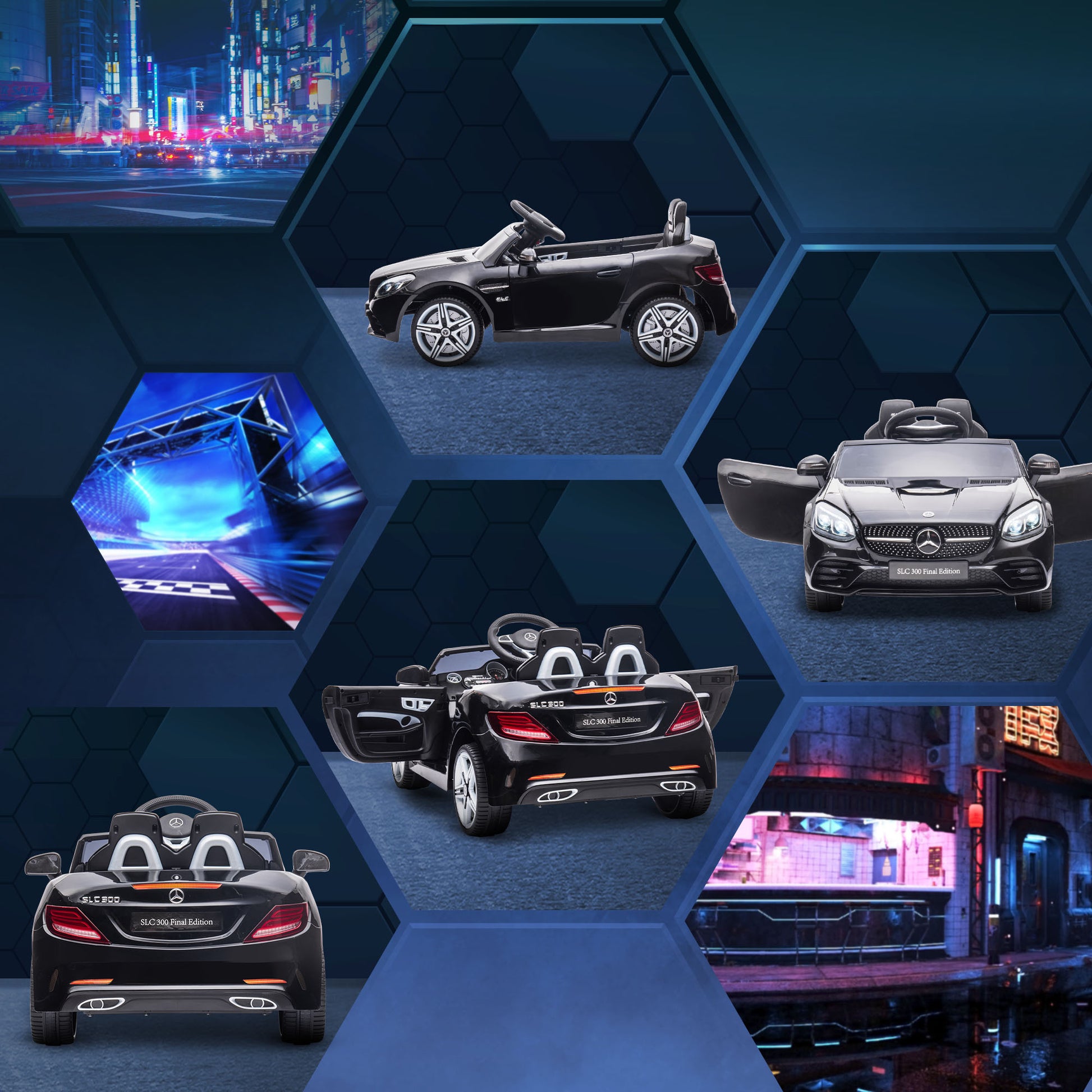 HOMCOM Benz SLC 300 Licensed 12V Kids Electric Ride On, with Music, Remote Control, LED Headlights, Horn, Black
