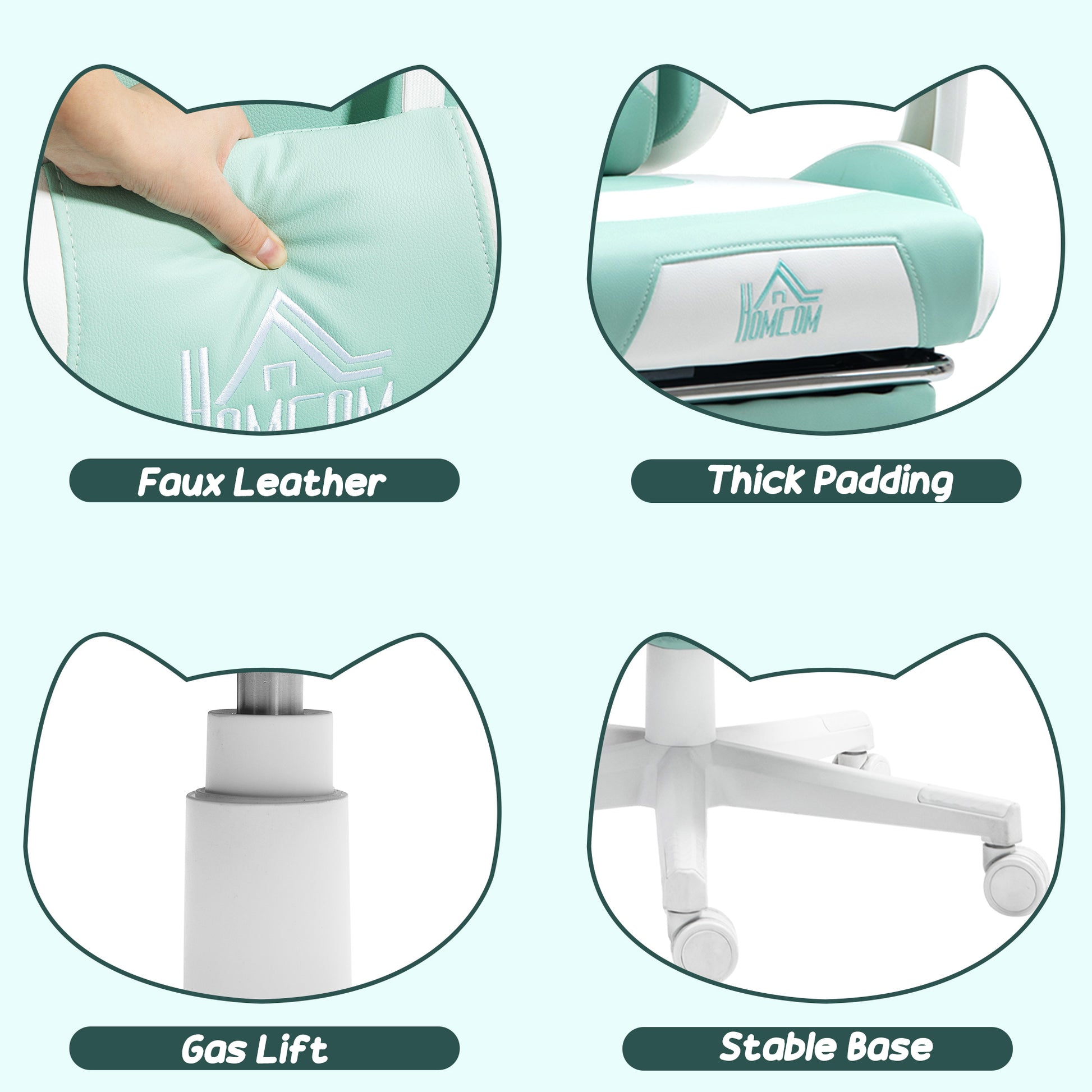HOMCOM Cat Ear and Paw Reclining Office Chair, with Footrest - Light Blue/White