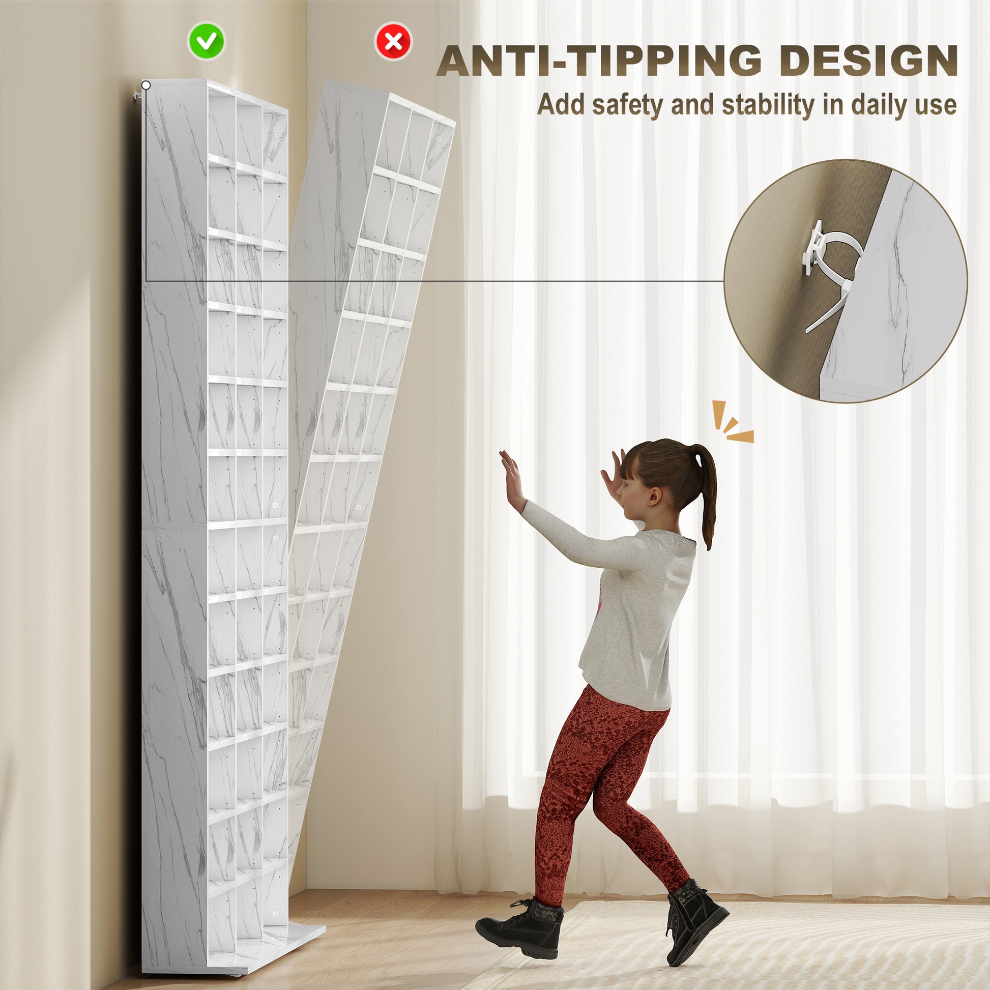 HOMCOM CD Storage Unit with Adjustable Shelves, 102 x 195 cm, Marble Effect