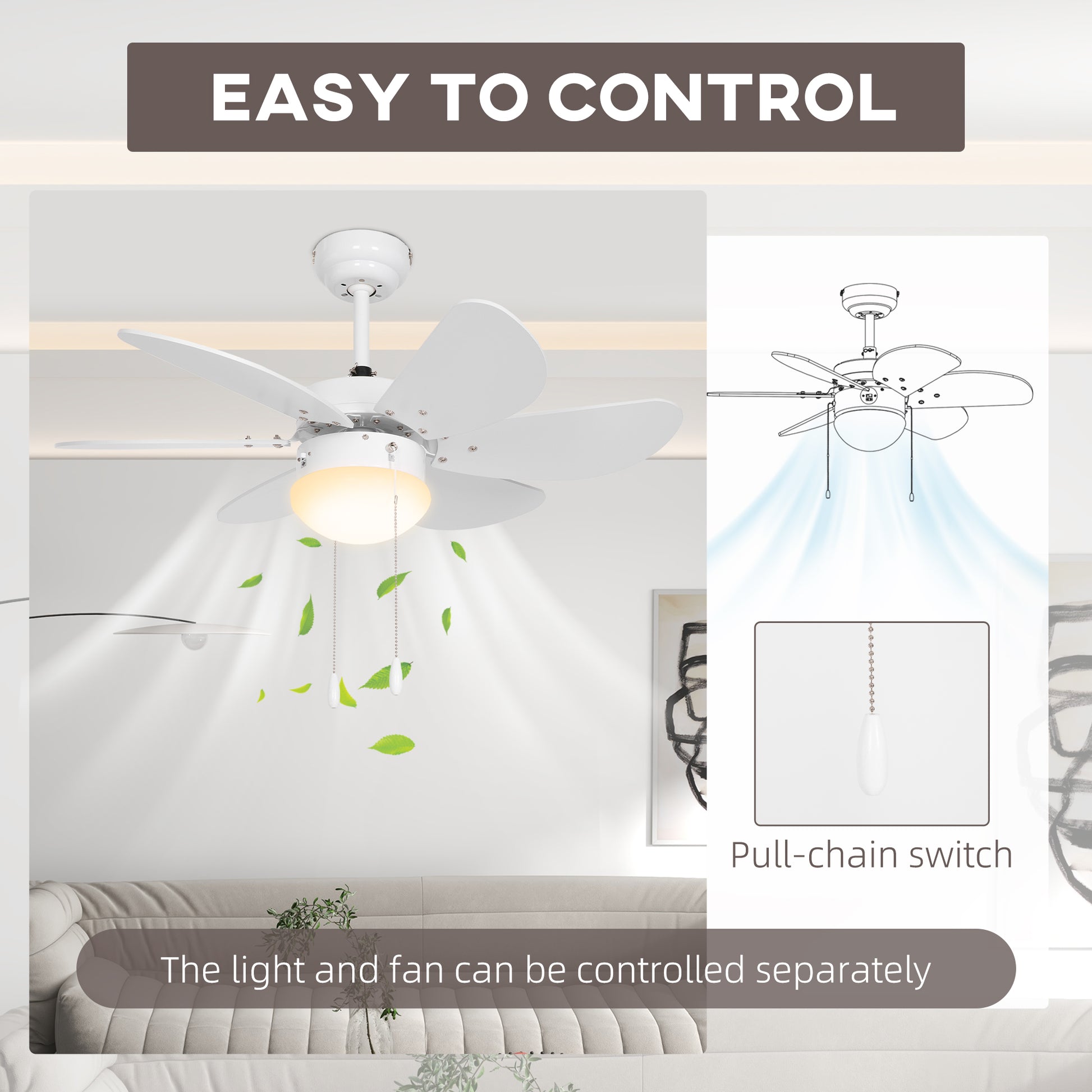 HOMCOM Ceiling Fan with LED Light, Flush Mount Ceiling Fan Lights with 6 Reversible Blades, Pull-chain Switch, White
