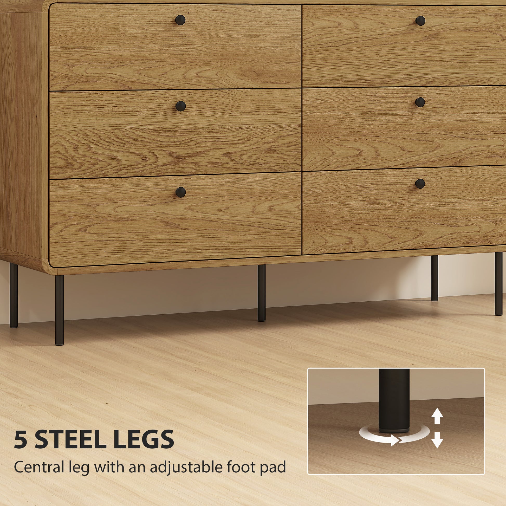 HOMCOM Chest of Drawers, 6 Drawer Dresser - Oak