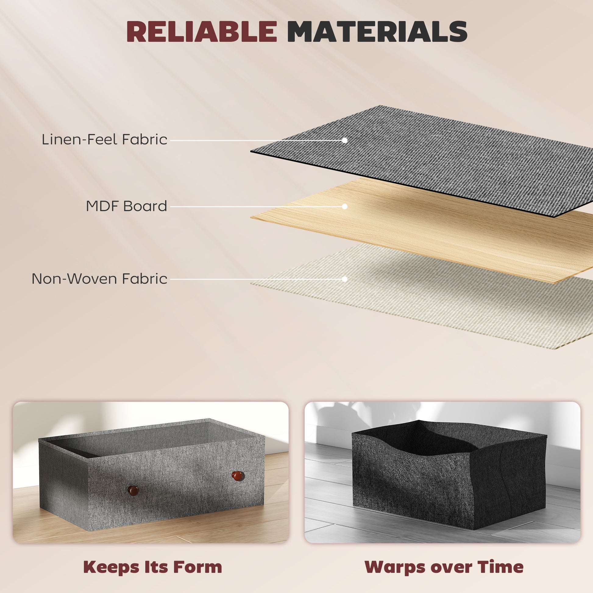 Bring style and order to your bedroom with this chest of drawers from HOMCOM. Featuring six foldable fabric drawers, it makes sorting clothes like T-shirts, jeans and socks simple. The two-tone design, grey and rustic brown wood-effect, brings a stylish look. The MDF and steel frame ensures stability, while anti-tip straps add safety. Transform your space into a serene haven with this HOMCOM dresser.