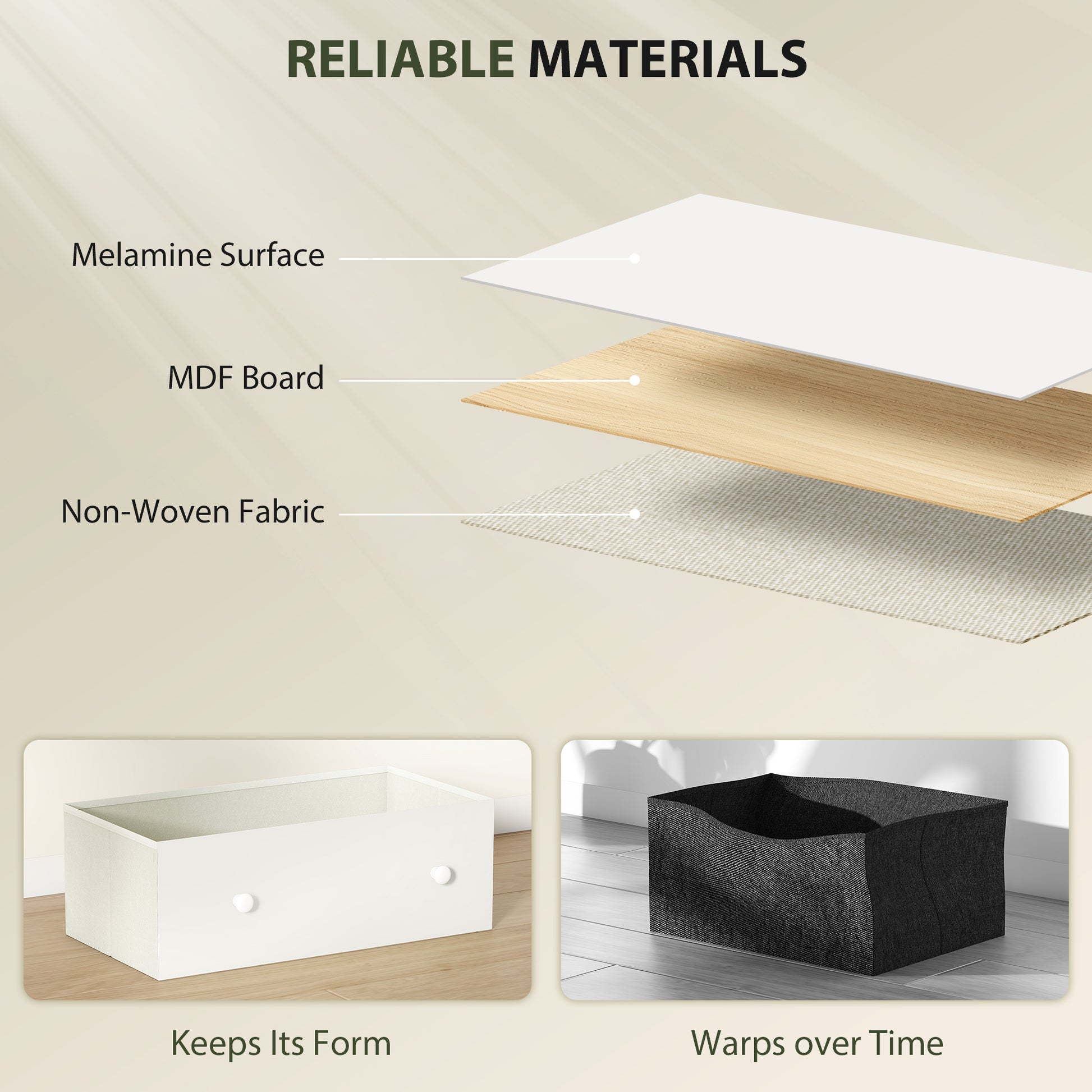 Bring style and order to your bedroom with this chest of drawers from HOMCOM. Featuring six foldable fabric drawers, it makes sorting clothes like T-shirts, jeans and socks simple. The two-tone design, white and grey wood-effect, brings a stylish look. The MDF and steel frame ensures stability, while anti-tip straps add safety. Transform your space into a serene haven with this HOMCOM dresser.