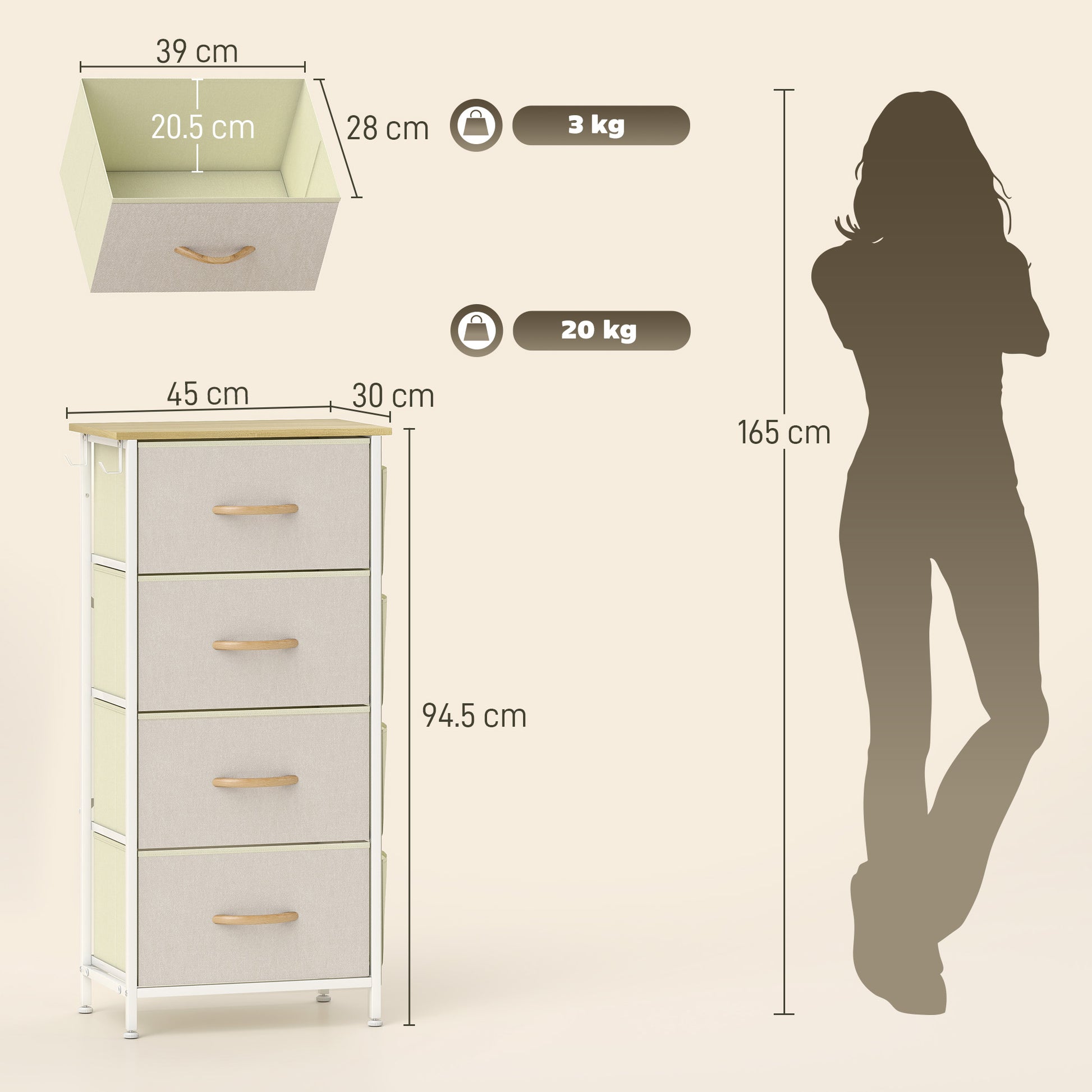 HOMCOM Chest of Four Fabric Drawers - Beige