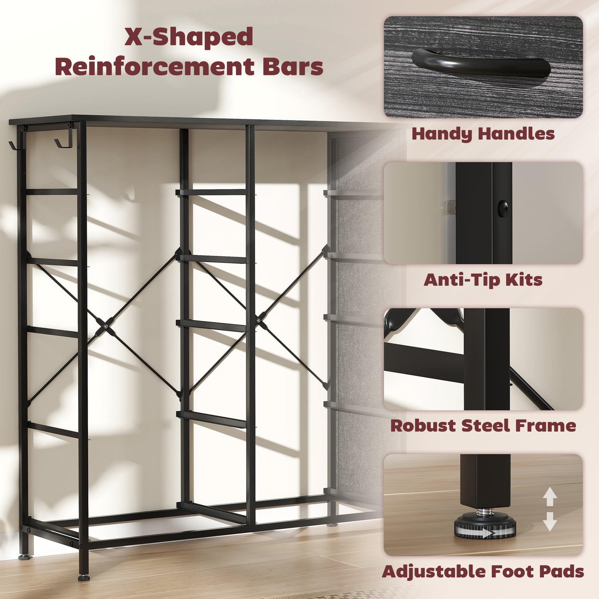 Easy, simple storage with this HOMCOM fabric chest of drawers. With six small and four large drawers, it's easy to sort everything from socks to pants. It also features four side pockets and two hooks to get smaller accessories altogether. A steel frame with X-bars keeps this bedroom dresser stable, finished with adjustable feet for balance - even on unsteady grounds.