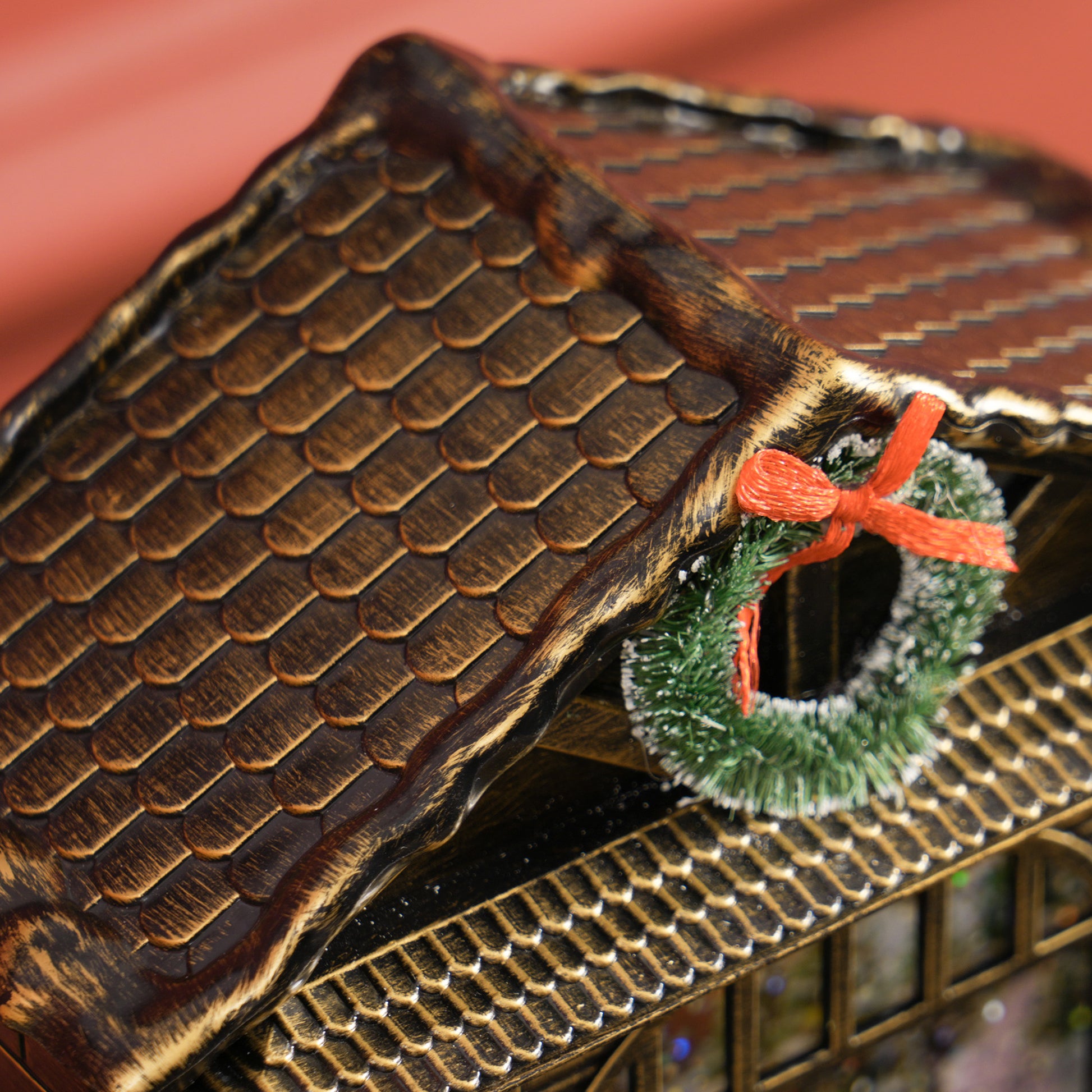 HOMCOM Christmas Snow Globe Lantern with Lights, Musical Snow Globe with Swirling Glitter, Battery Operated Musical Christmas Decoration for Holiday Party Gift, Bronze Tone
