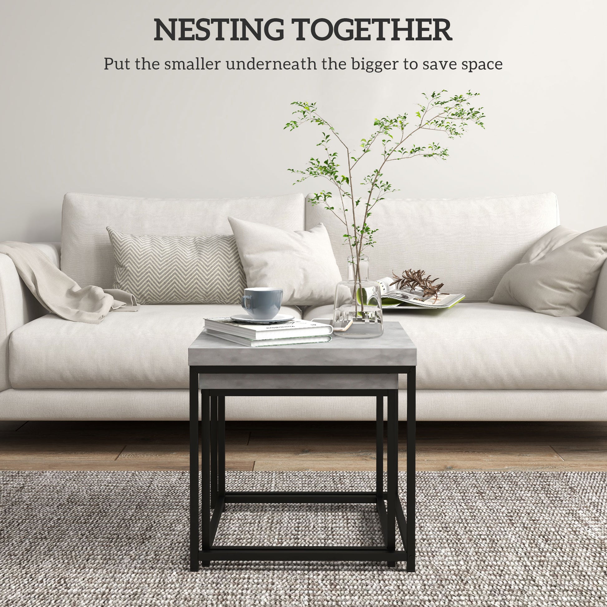 HOMCOM Coffee Table Set of 2, Nest of Tables with 3.5cm Thick Tabletop, Grey