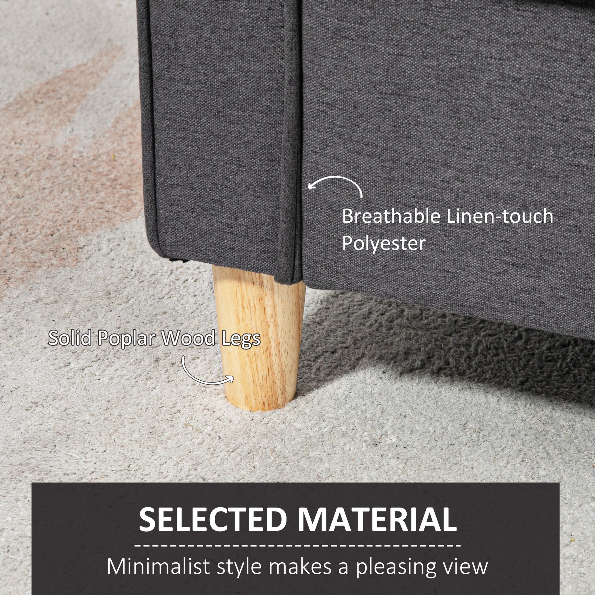 HOMCOM Compact Loveseat Sofa, Modern 2 Seater Sofa for Living Room with Wood Legs and Armrests, Dark Grey
