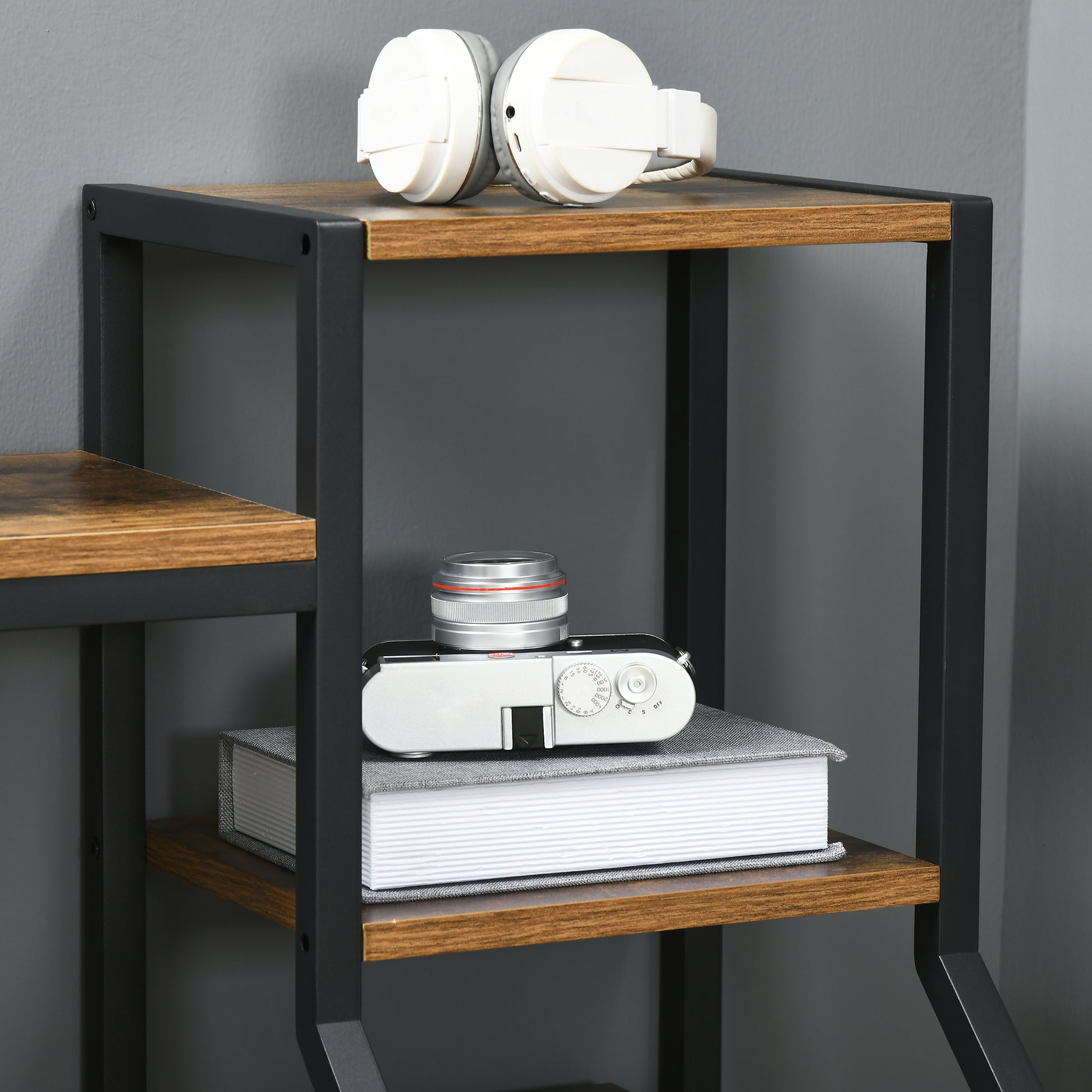 HOMCOM Computer Desk with Bookshelf, Industrial Writing Table with 6 Tier Storage Shelves for Home Office, Bedroom, Study, 150 x 55 x 138cm, Rustic Brown