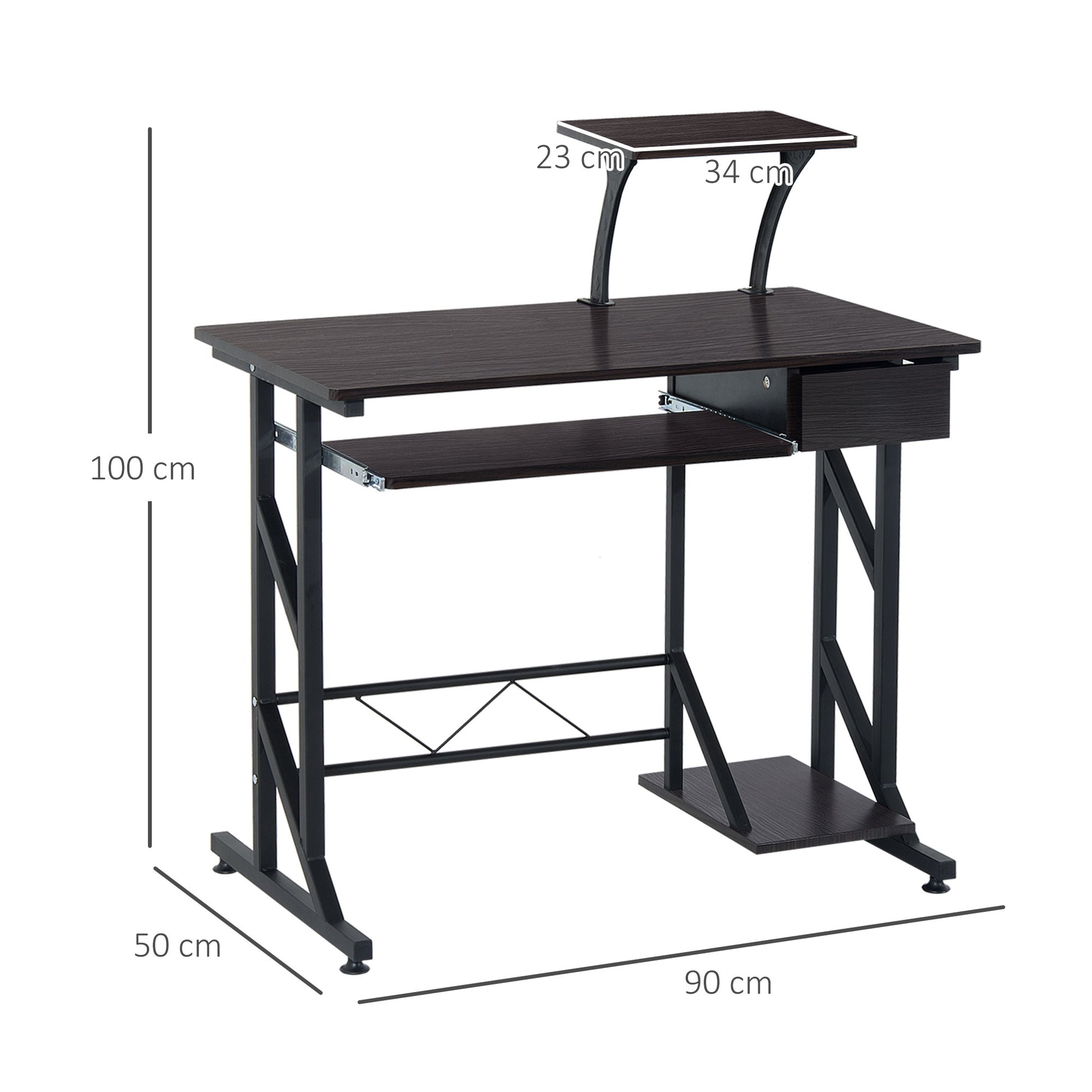 HOMCOM Computer Desk with Display Stand, Sliding Keyboard Tray Drawer and Host Box Shelf Home Office Workstation Dark Brown