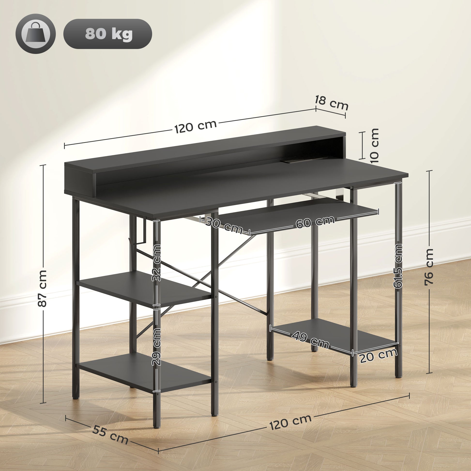 HOMCOM Computer Desk with LED Lights and Power Outlets, 120 x 55 cm Gaming Desk with Monitor Stand, Sliding Keyboard Tray and Storage Shelves for Home Office, Black