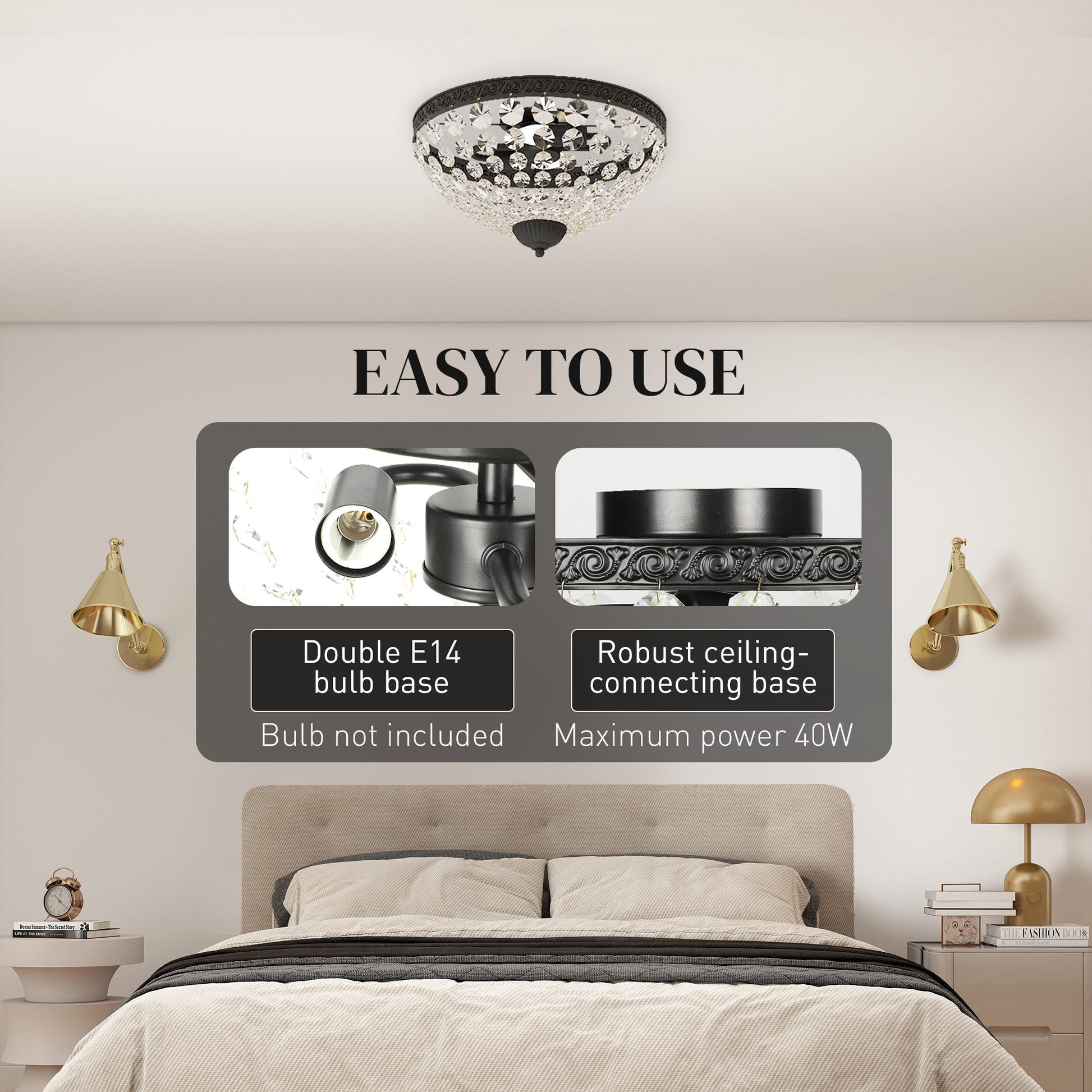 HOMCOM Crystal Chandelier Ceiling Light with 168 Octagonal Beads, Vintage 2-Light Flush Mount Ceiling Light for Living Room, Bedroom, Hallway, Dining Room, Black