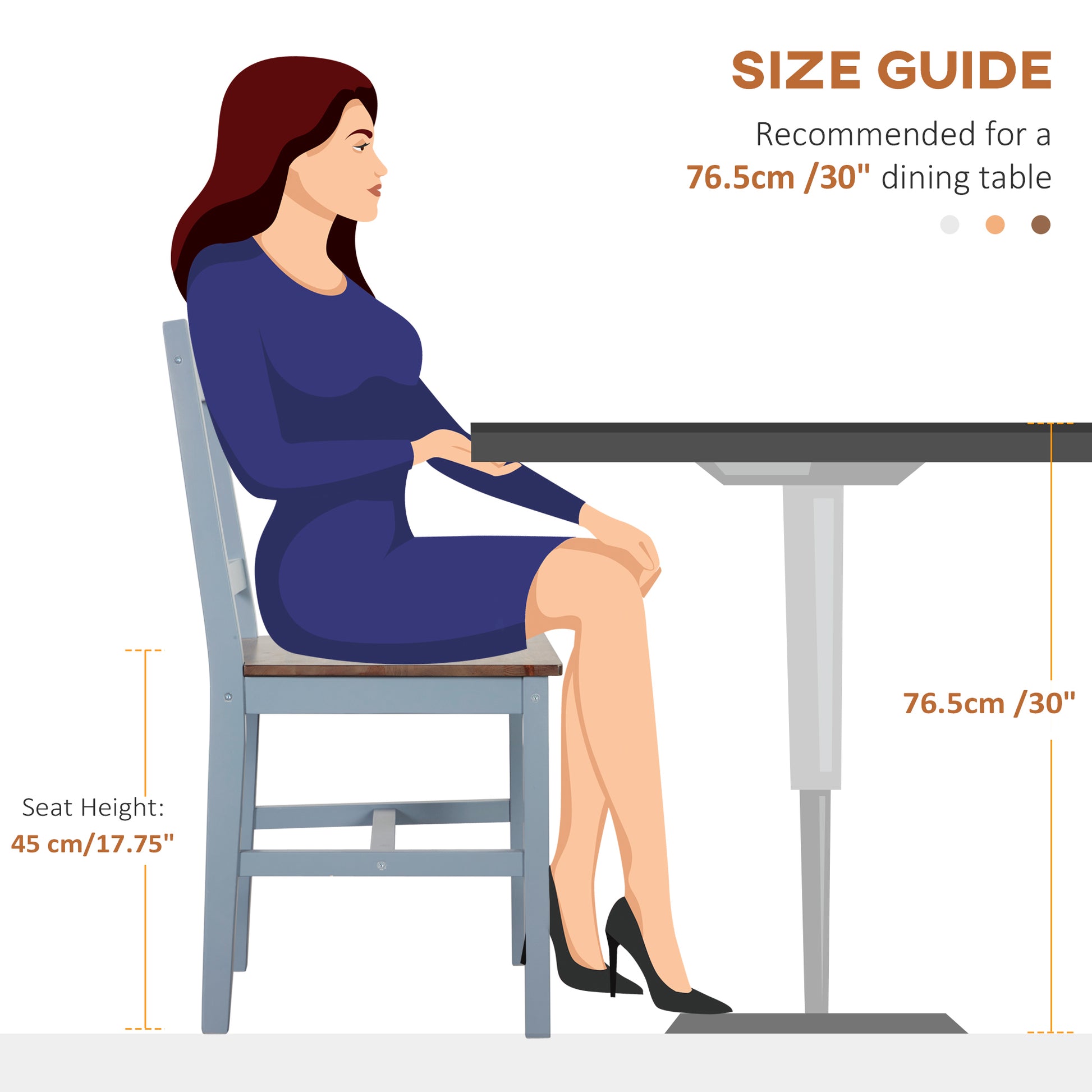 HOMCOM Dining Chairs Set of 2, Kitchen Chair with Slat Back, Pine Wood Structure for Living Room and Dining Room, Grey