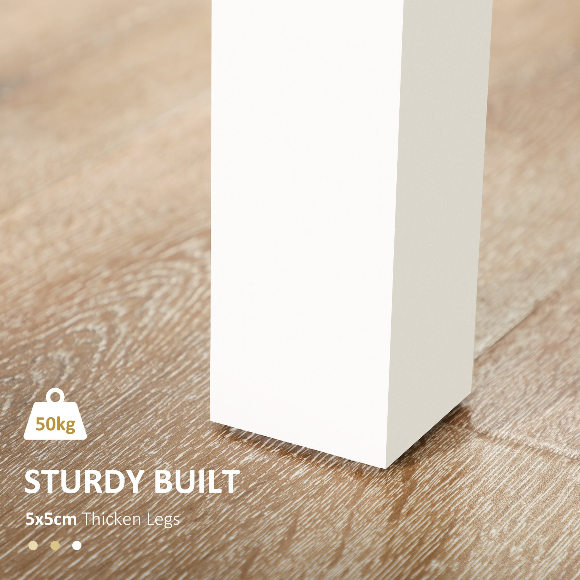 Dining tables are hot spots even when there's no food on them. Playing games, helping with homework..., they're where you share good times with family and friends. This white table features a clean line with thickened legs and veneered top, it brings a modern beauty to your small kitchen. This table seats up to four to six people, just right for a weekend brunch with friends. You will love this table for its large top, which makes it suitable for space-conscious rooms.