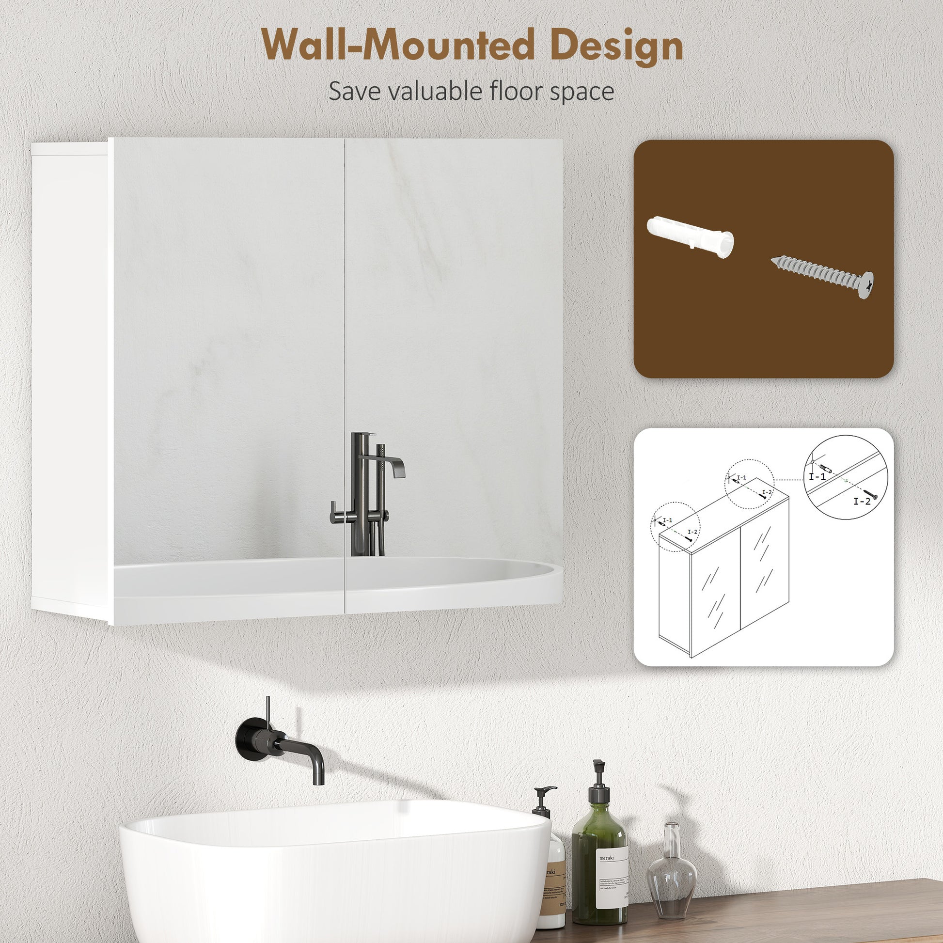 HOMCOM Double-Door Bathroom Mirror Cabinet - White