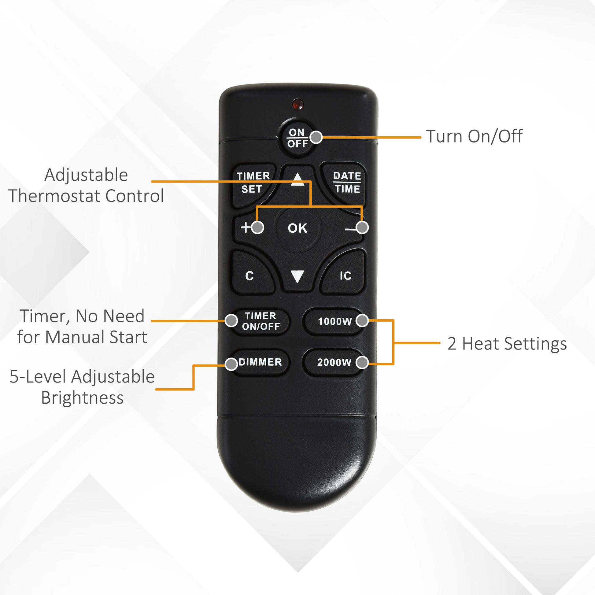 HOMCOM Electric Firplace Suites & Mantelpiece w/LED Flames Remote Marble Stone Modern Curved Surround Intelligent Safe Tempered Glass Adjustable Thermal 1000W/2000W