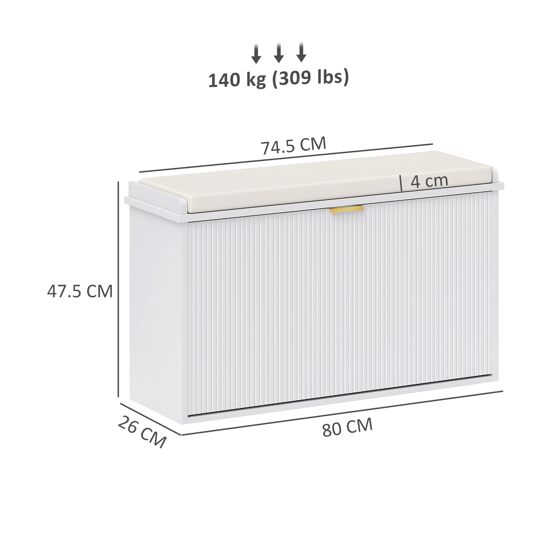 HOMCOM Elegant Eight Shoe Bench, with Top Seat - White