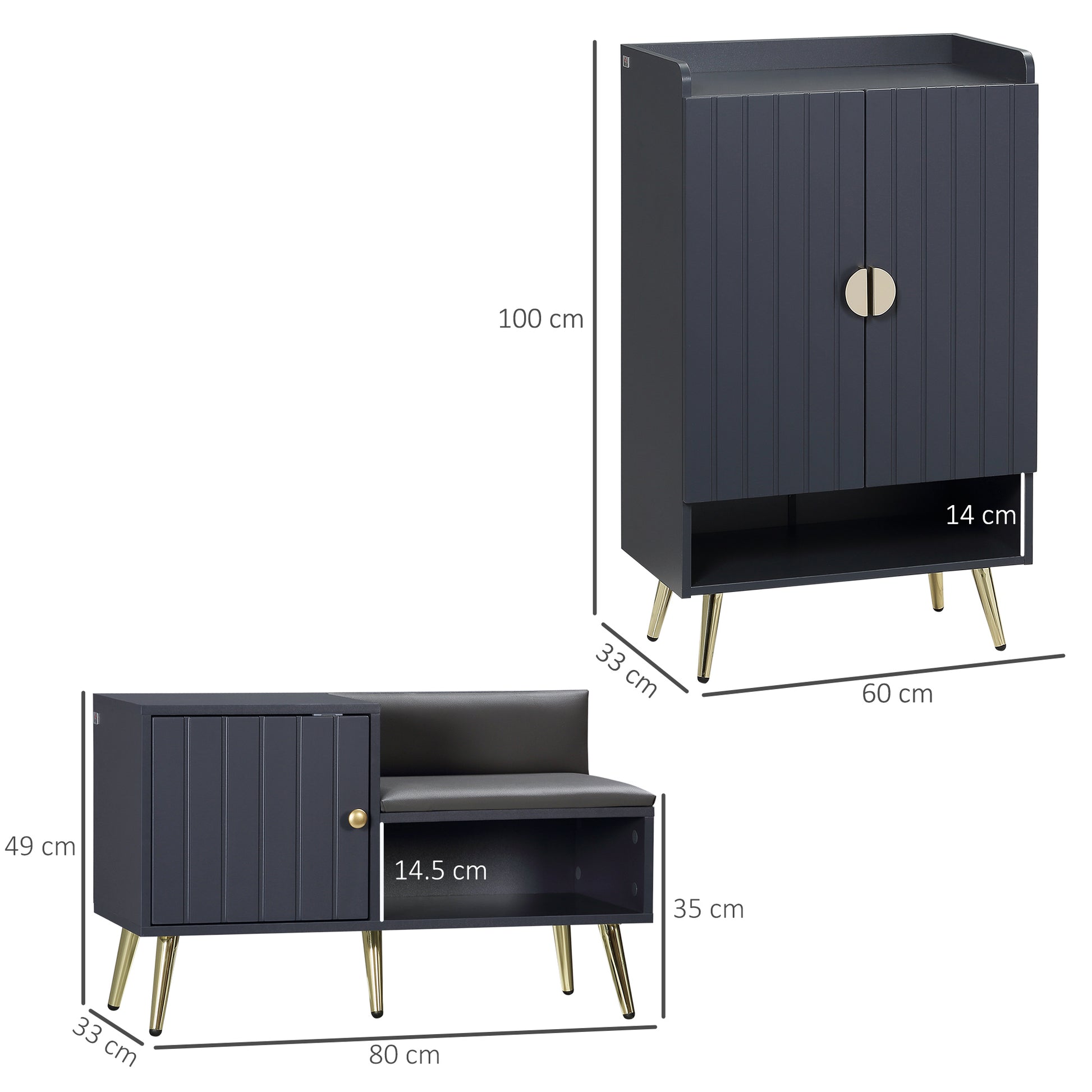 HOMCOM Entryway Furniture Set for 19 Pairs of Shoes, Hallway Shoe Cabinet with Adjustable Shelves, Shoe Storage Bench with Steel Legs, Grey