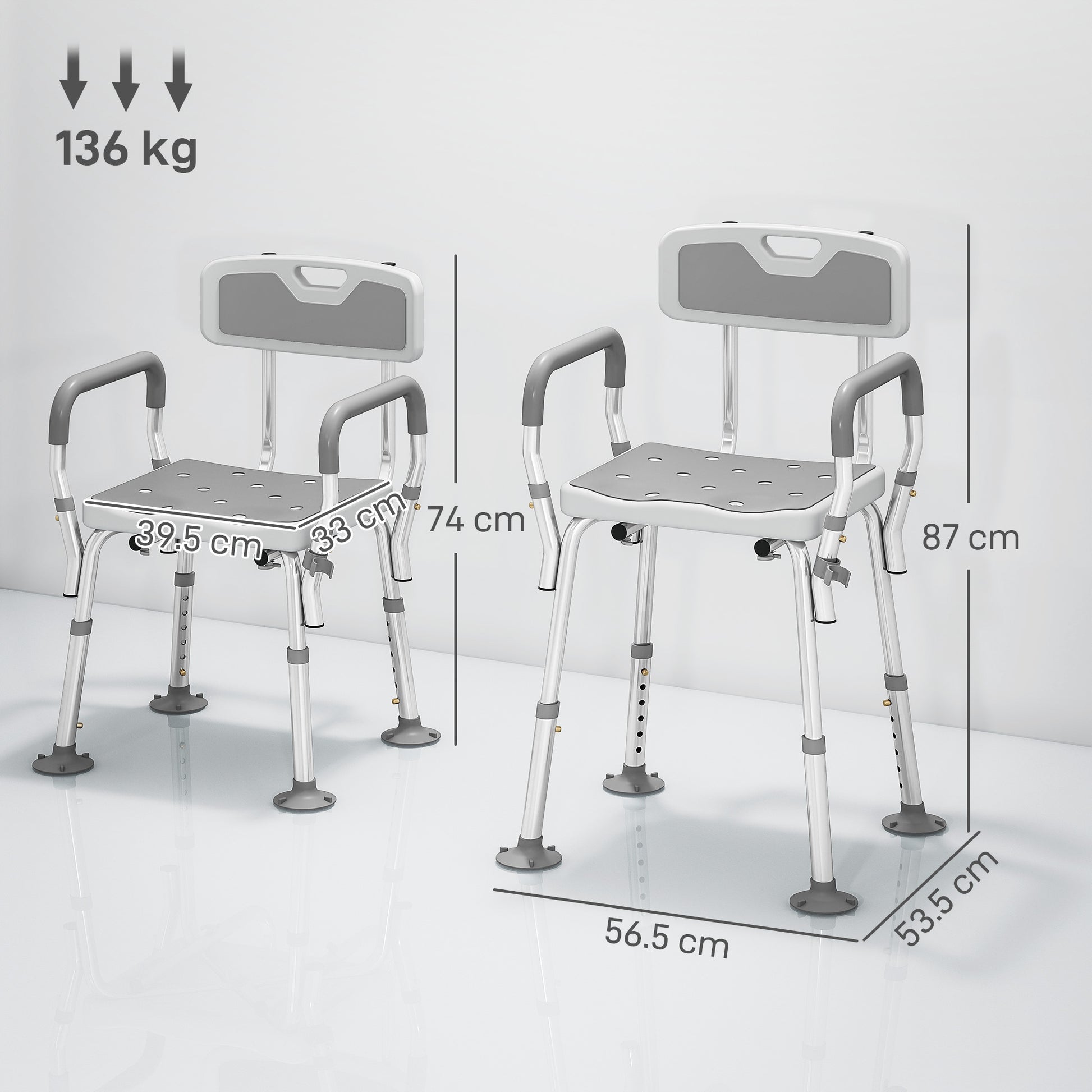 HOMCOM EVA Padded Shower Chair for the Elderly and Disabled, Height Adjustable Shower Stool with Back and Arms, 4 Suction Foot Pads, Light Grey
