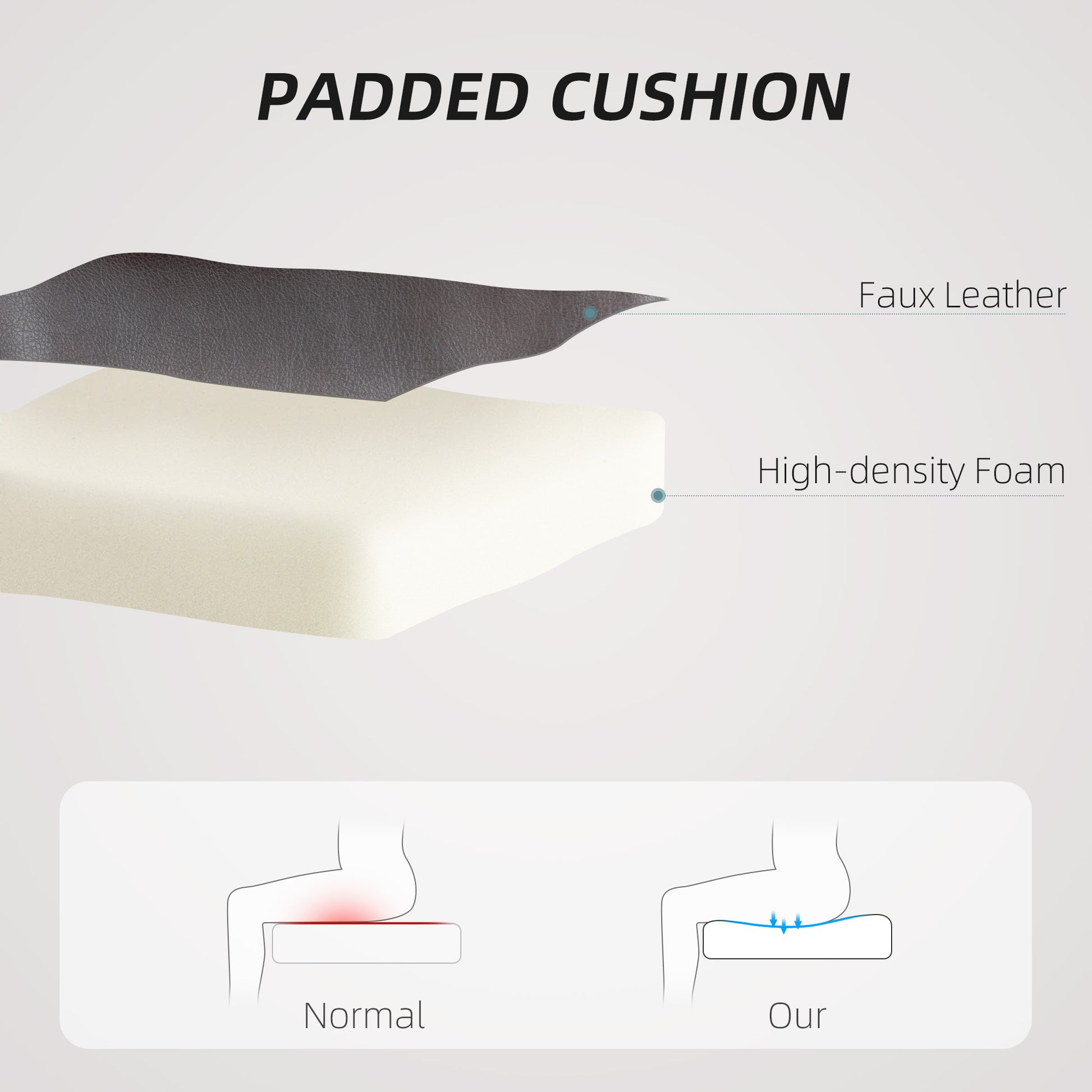 - Material: Faux Leather, Foam, Metal