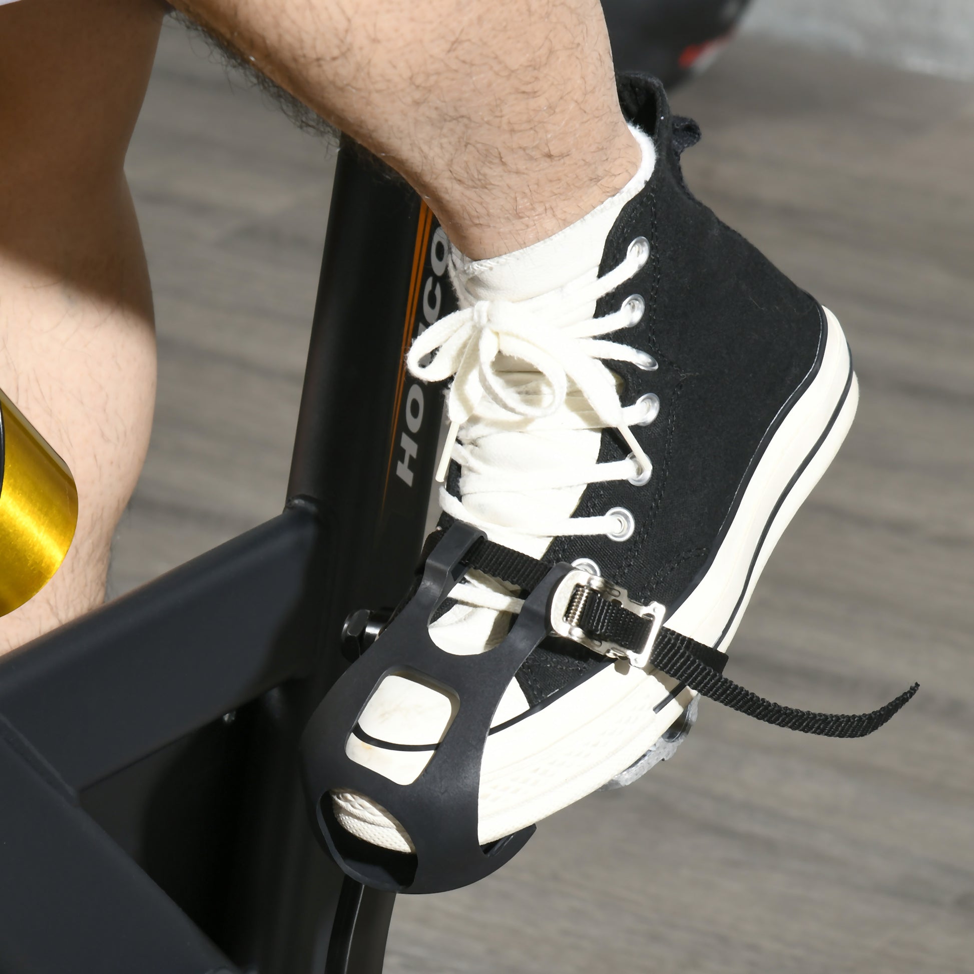 Elevate your fitness game with the HOMCOM exercise bike! Experience seamless rides with the adjustable belt-driven resistance and emergency brake for those intense sessions. With the hand pulse handlebar and LCD display, you can track workout data effortlessly while burning fat, boosting immunity and strengthening heart, lungs and muscles. The robust triangular steel frame, H-shaped base and heavy flywheel ensures you a stable and effective training every time with this indoor bike.