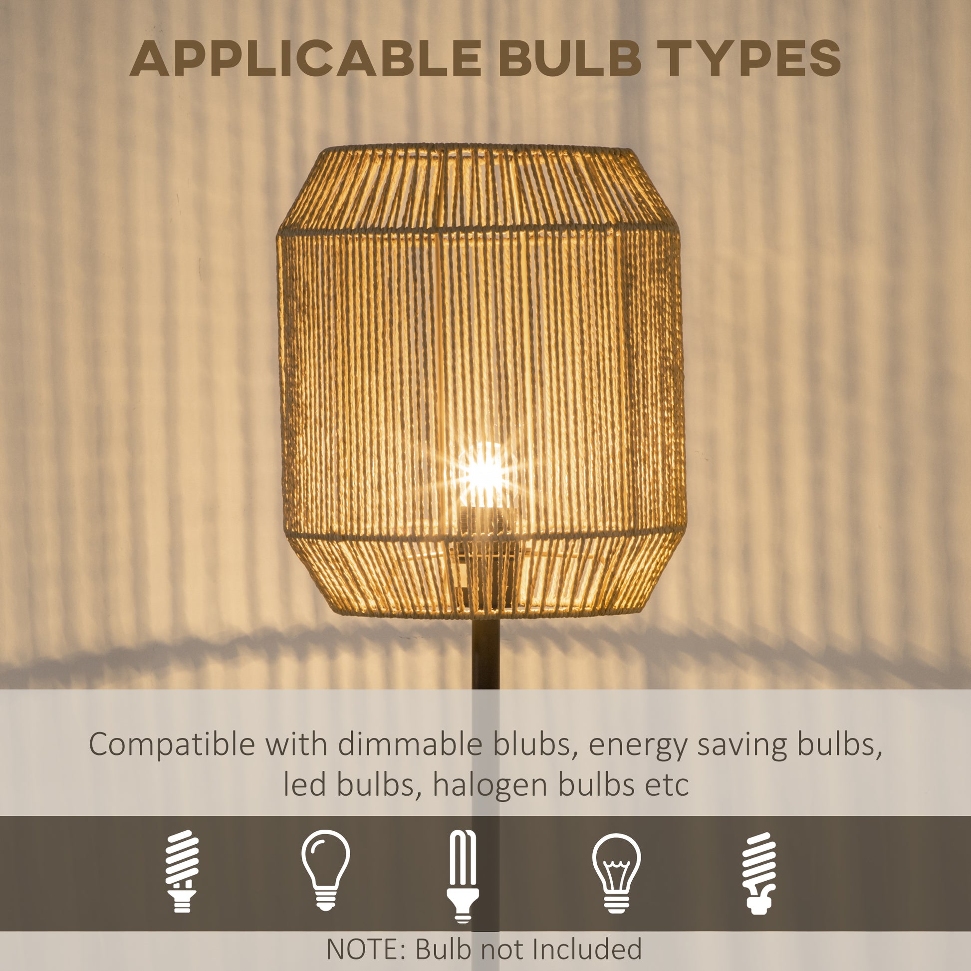 HOMCOM Farmhouse Standing Lamp, Floor Lamps with Hand Woven Rattan Lampshade for Living Room