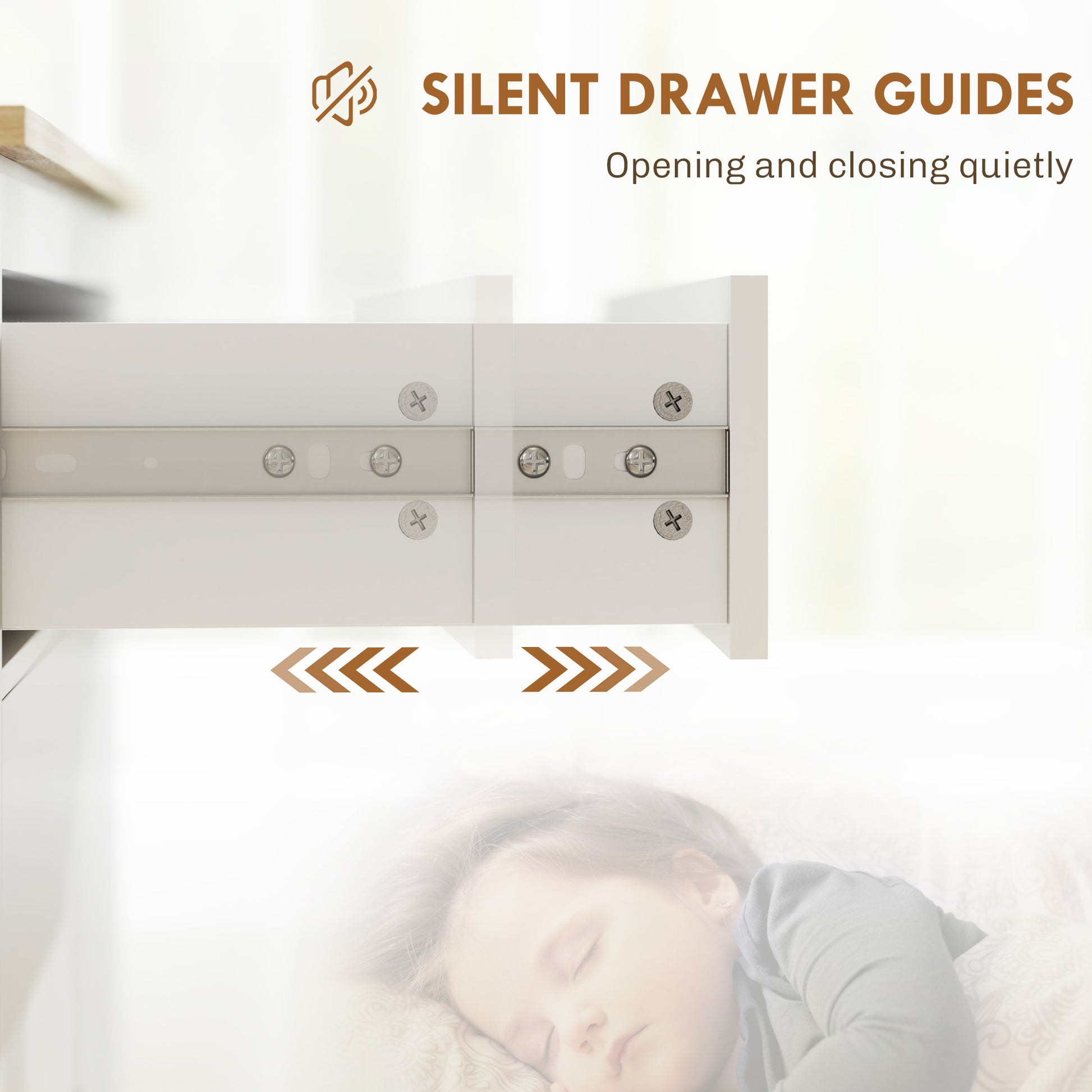 - Silent drawer guides for quiet opening and closing