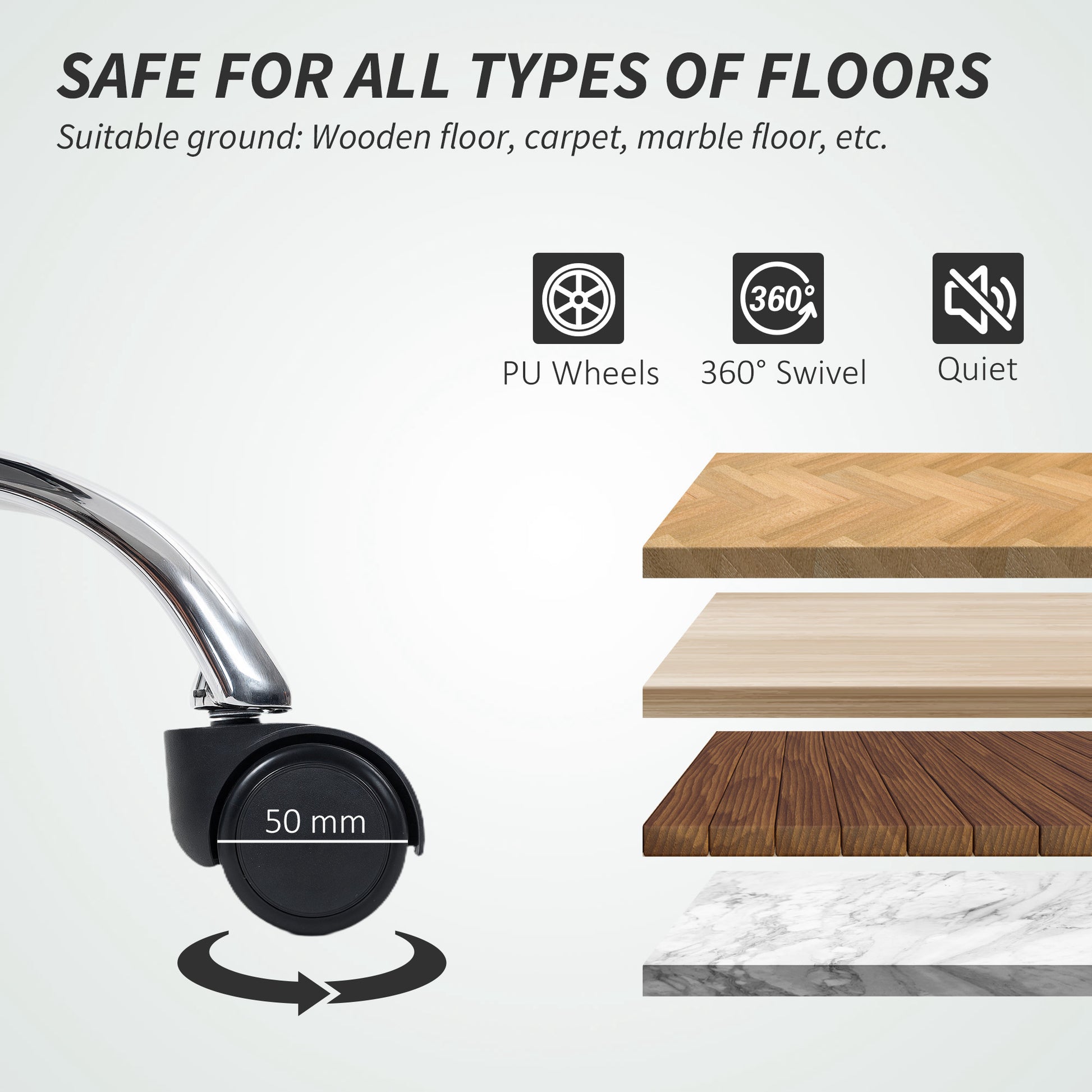 - Five wheels to move chair around easily, quietly and floor-friendly both seated and empty