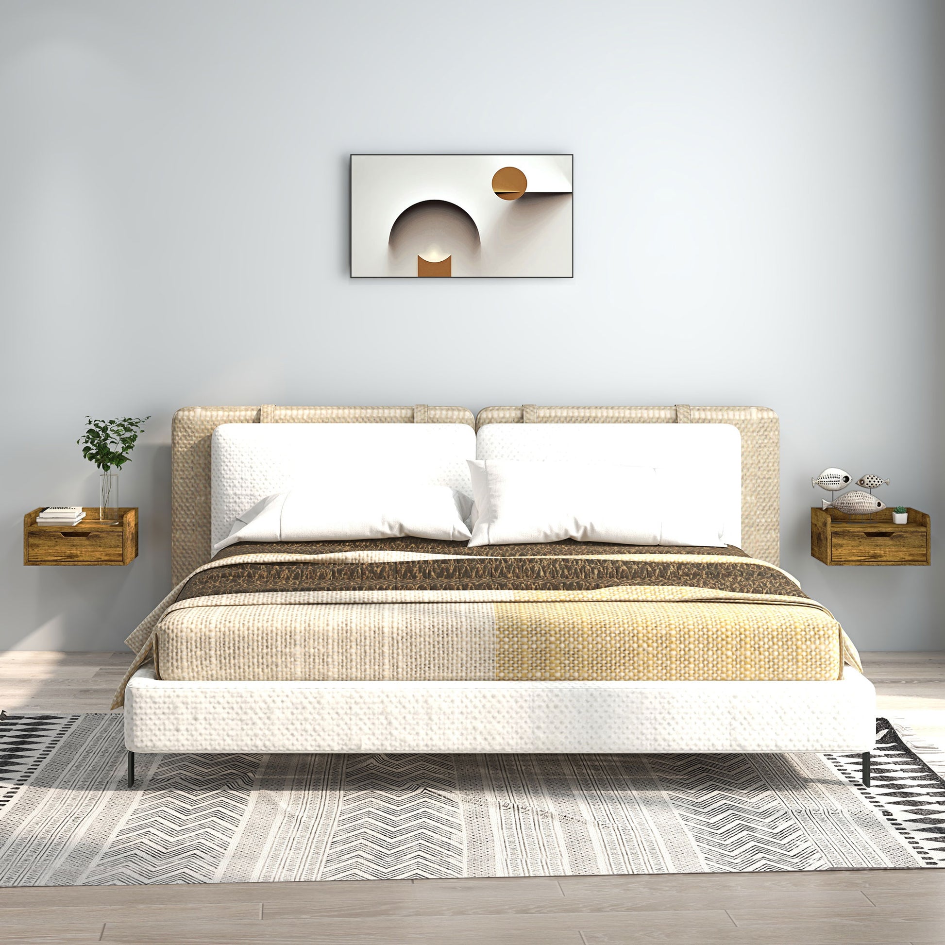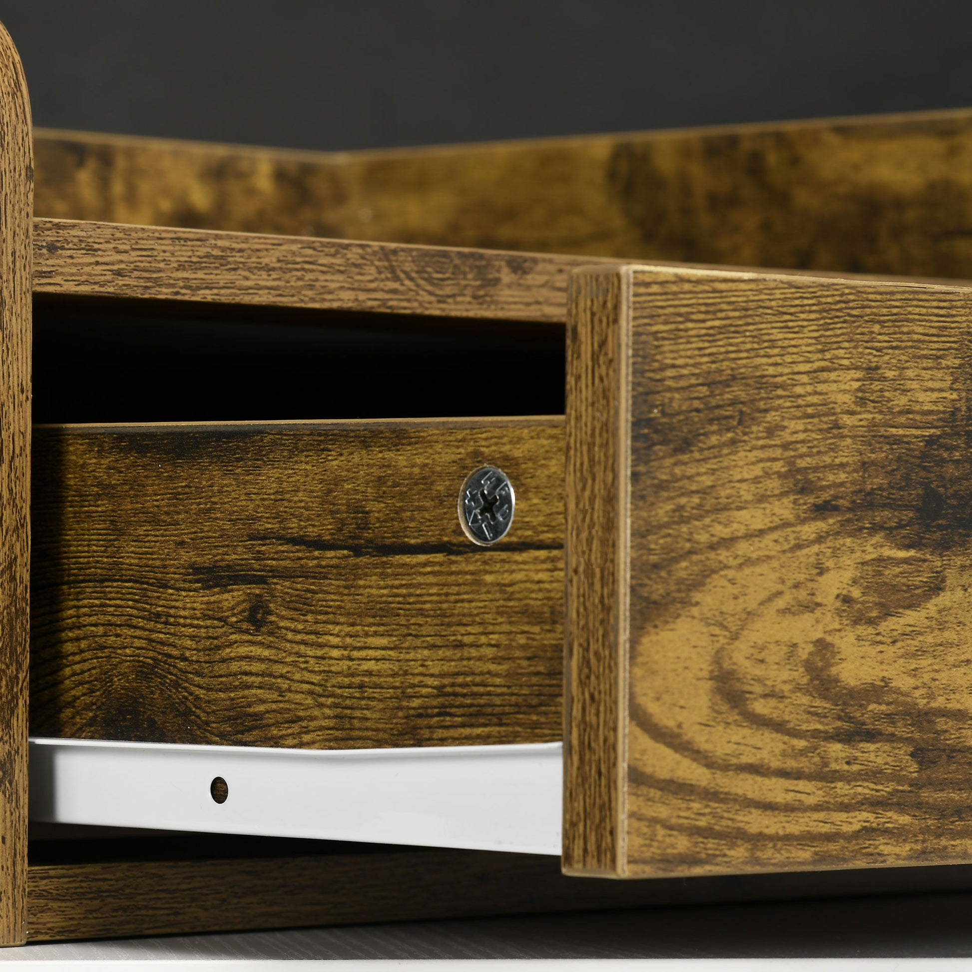 HOMCOM Floating Nightstand Set of 2 Wall Mounted Bedside Table with Storage Drawer for Bedroom, Rustic Brown