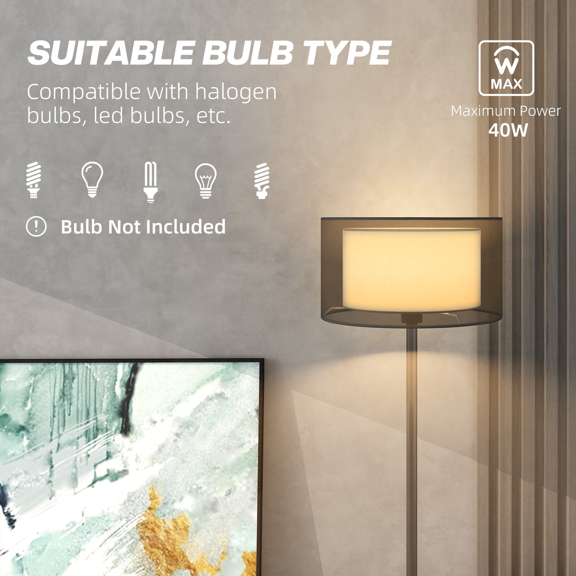 Add a touch of modern elegance to your space with the HOMCOM floor standing lamp. Its chic double lampshade, featuring a sleek black exterior and a crisp white interior, casts a warm, inviting glow. Effortlessly operated by a foot switch, this standard lamp is a stylish and convenient addition to any living room. Suit for both halogen and LED bulbs.