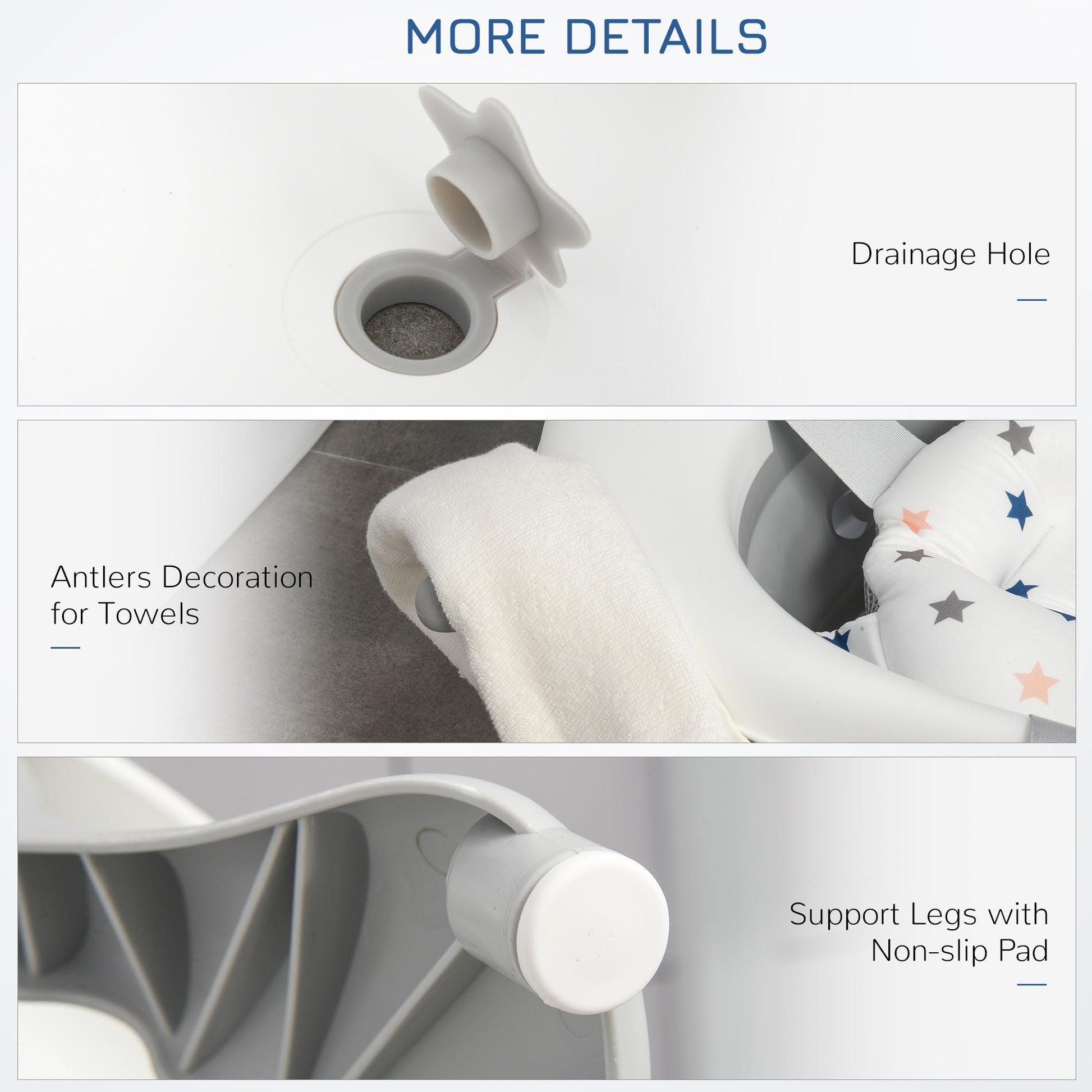 HOMCOM Foldable Baby Bathtub Set, Collapsible Bath Tub with Thermostatic Water Plug, Non-Slip Support, Cushion Pad, Drain Plugs, for Newborn to 3 Years - Offwhite