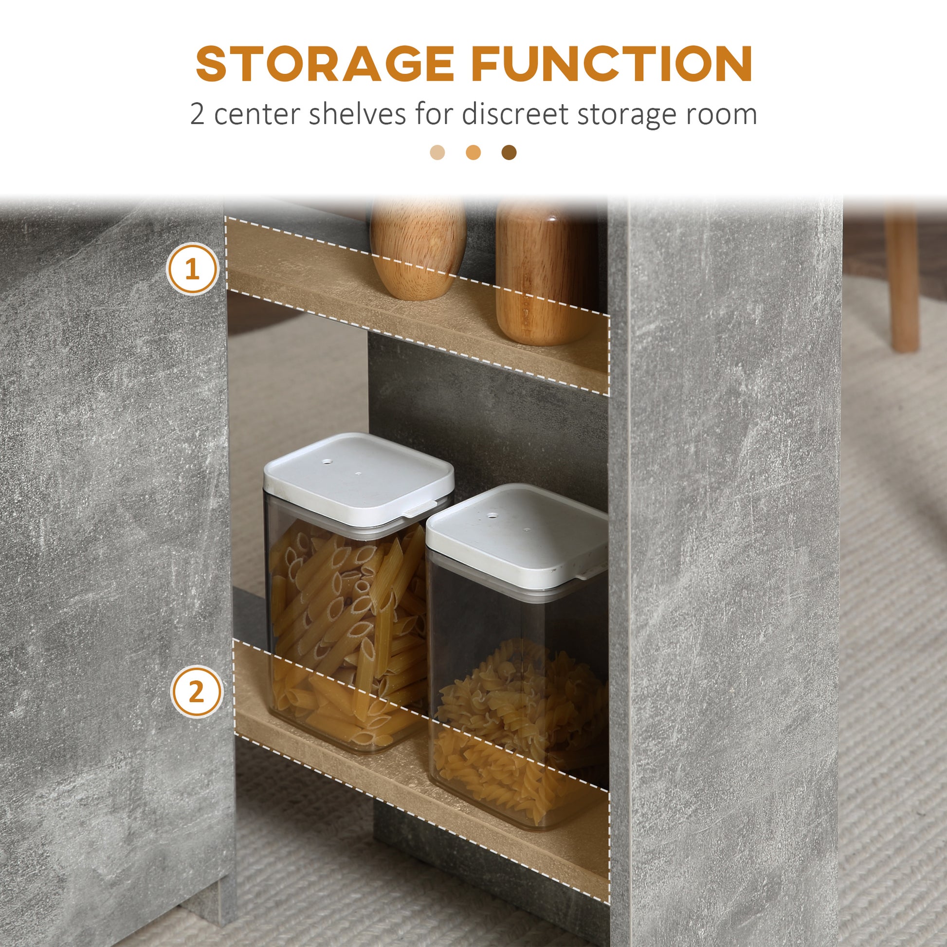 HOMCOM Folding Dining Table, Drop Leaf Table with 2-Tier Shelves, Rolling Casters, for Small Spaces, Kitchen, Cement Grey