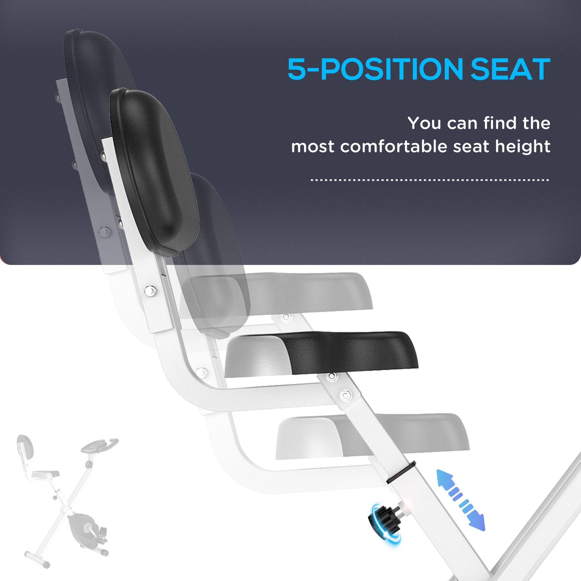 This magnetic exercise bike from HOMCOM. Adjustable to eight different resistance levels to suit you, it is fitted with a five-level adjustable seat. Suitable height from 155-180 cm. An LCD monitor is placed on the front of the cycling machine, which displays time elapsed, speed, distance, calories and heart rate (measured by the metal panels on the handlebar). An 'X' shaped metal frame for strength and stability of the indoor exercise bike, it can be folded for easy storage when not needed.