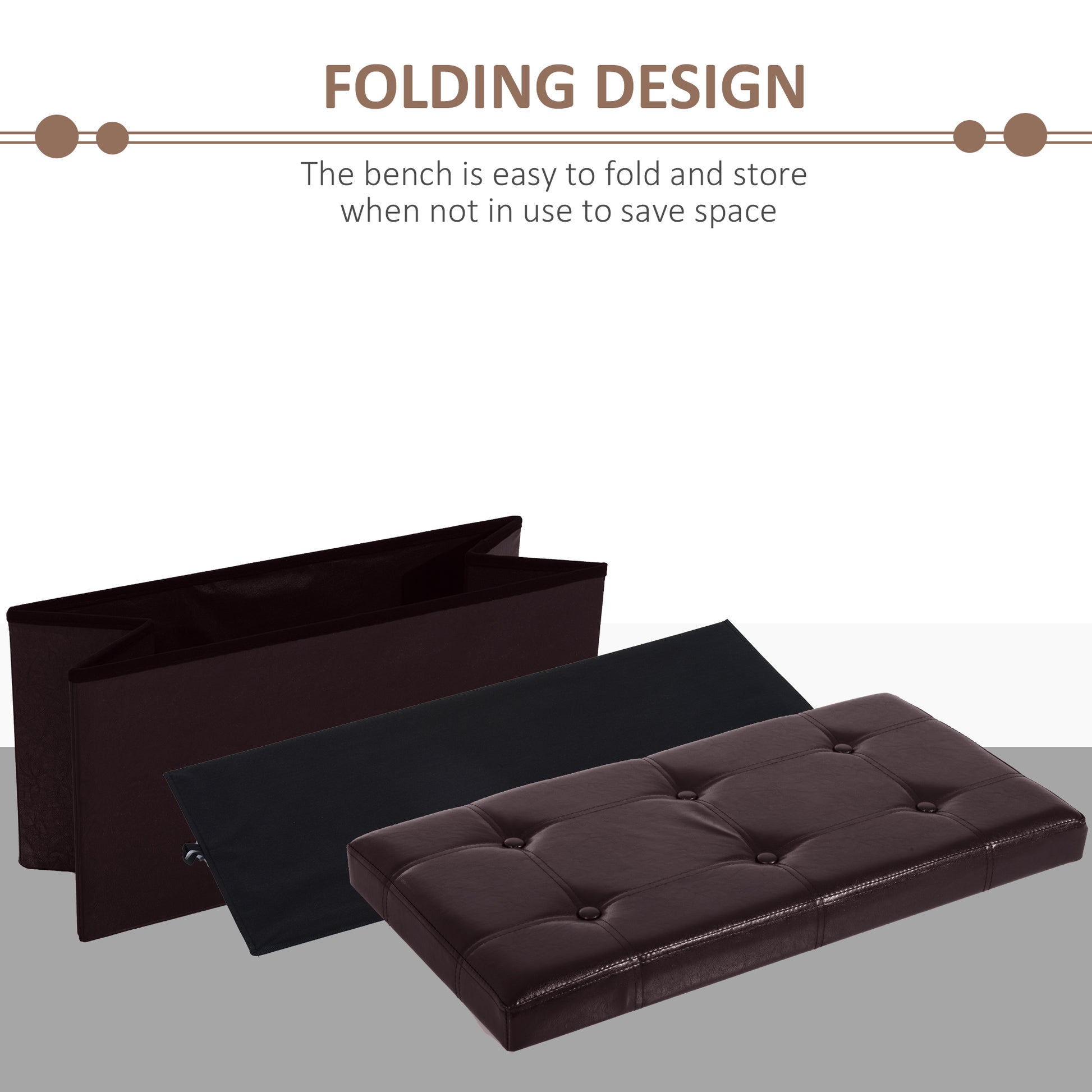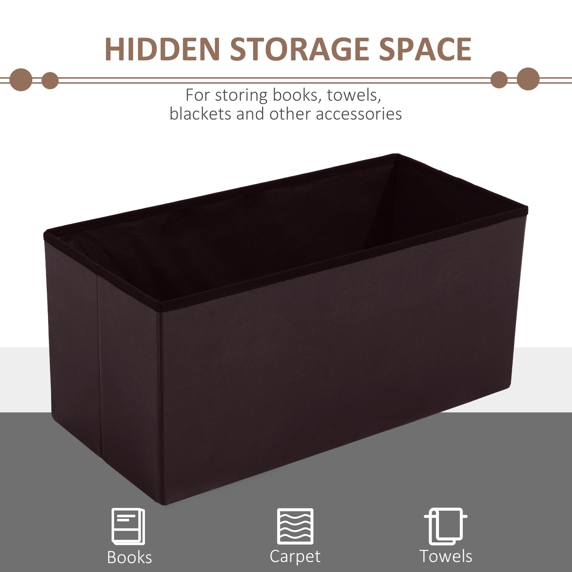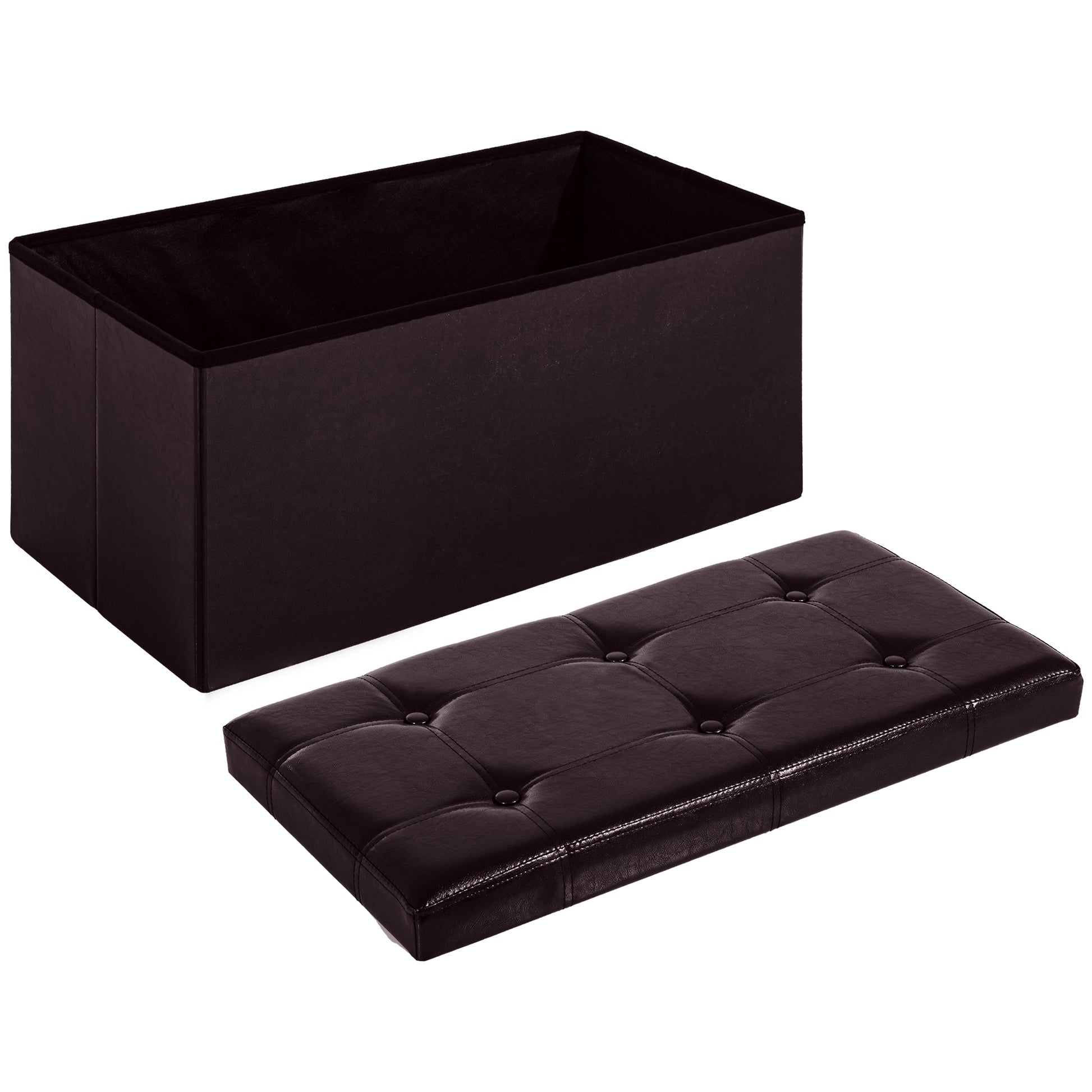 HOMCOM Folding Faux Leather Storage Cube Ottoman Bench Seat PU Rectangular Footrest Stool Box (Brown)