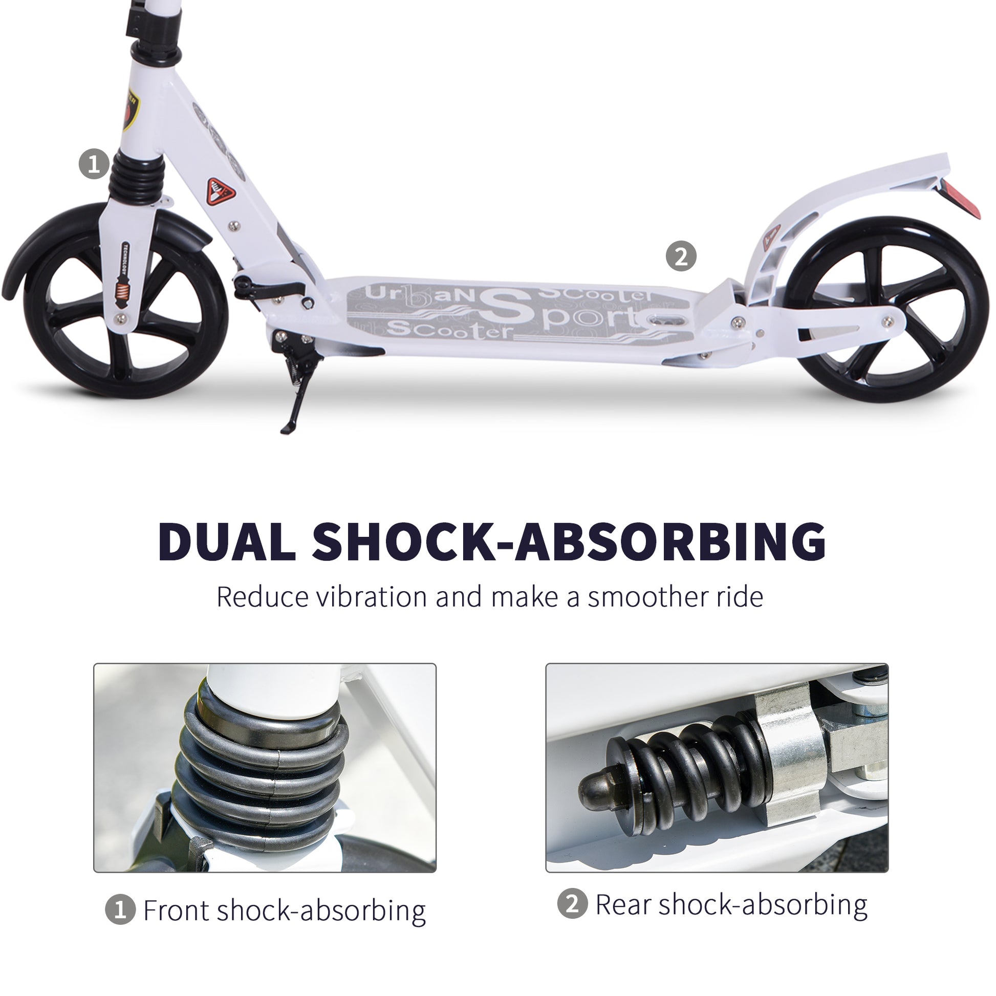 HOMCOM Folding Kick Scooter, Adjustable Ride On Scooter with 200mm Big Wheels and Double Shock Absorption, Urban Scooter for 14+ Teens Adult, White