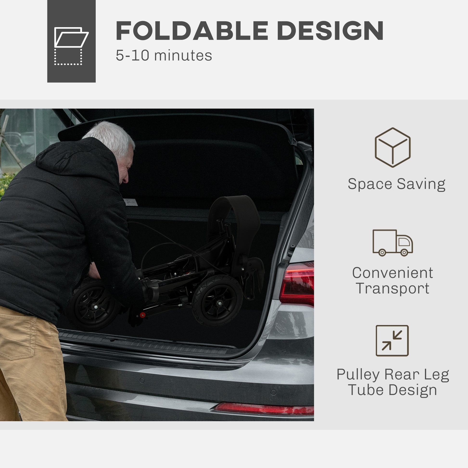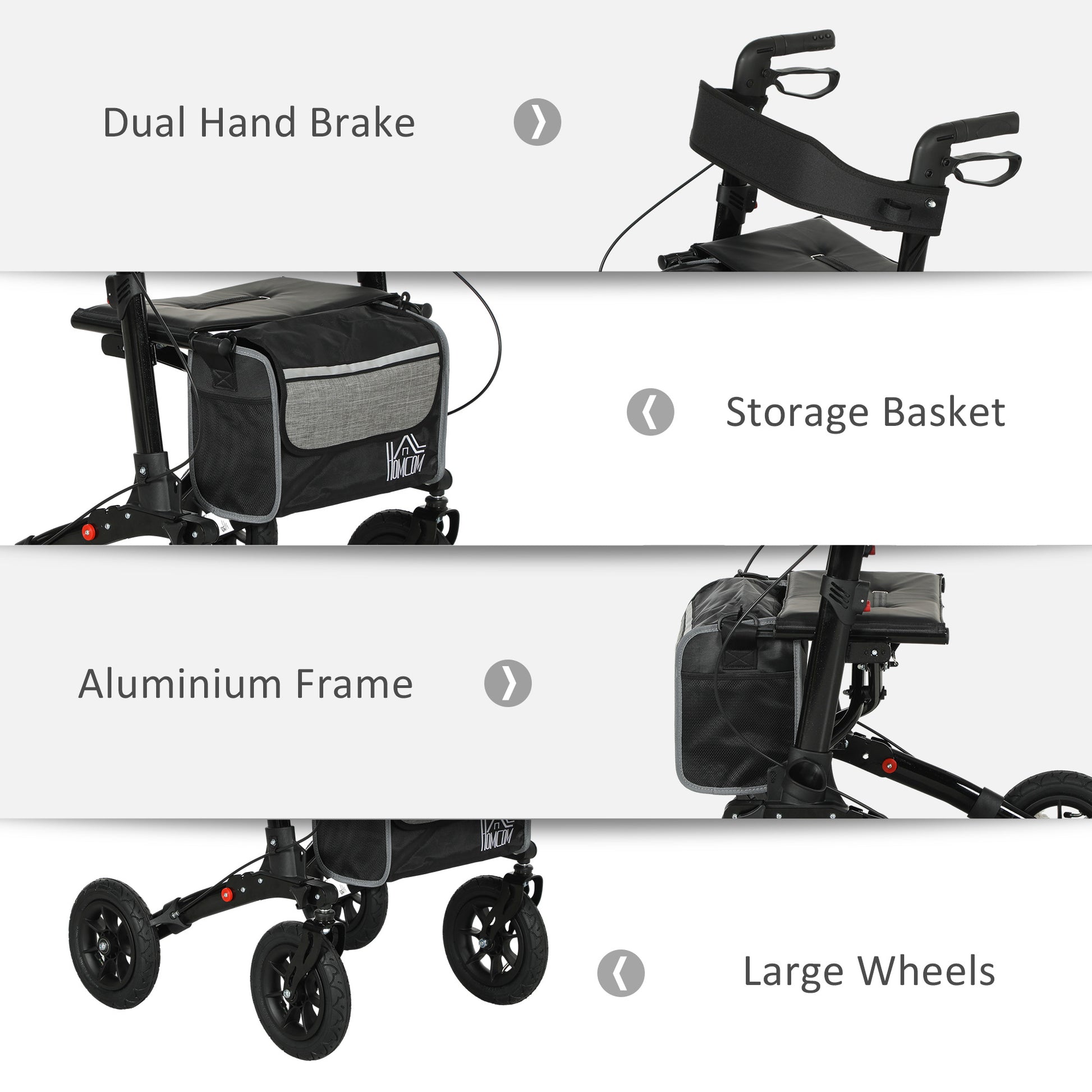 Explore the great outdoors with ease using the HOMCOM Rollator Walker with seat and wheels, your reliable mobility aid. This four-wheel rollator with seat features a comfy padded seat and supportive back, great for restful stops. Glide smoothly over any terrain with its large, all-terrain rubber wheels and maintain control with the dual hand braking system. Suitable for anyone 160-190cm tall, it's your go-anywhere walking aid for the elderly.