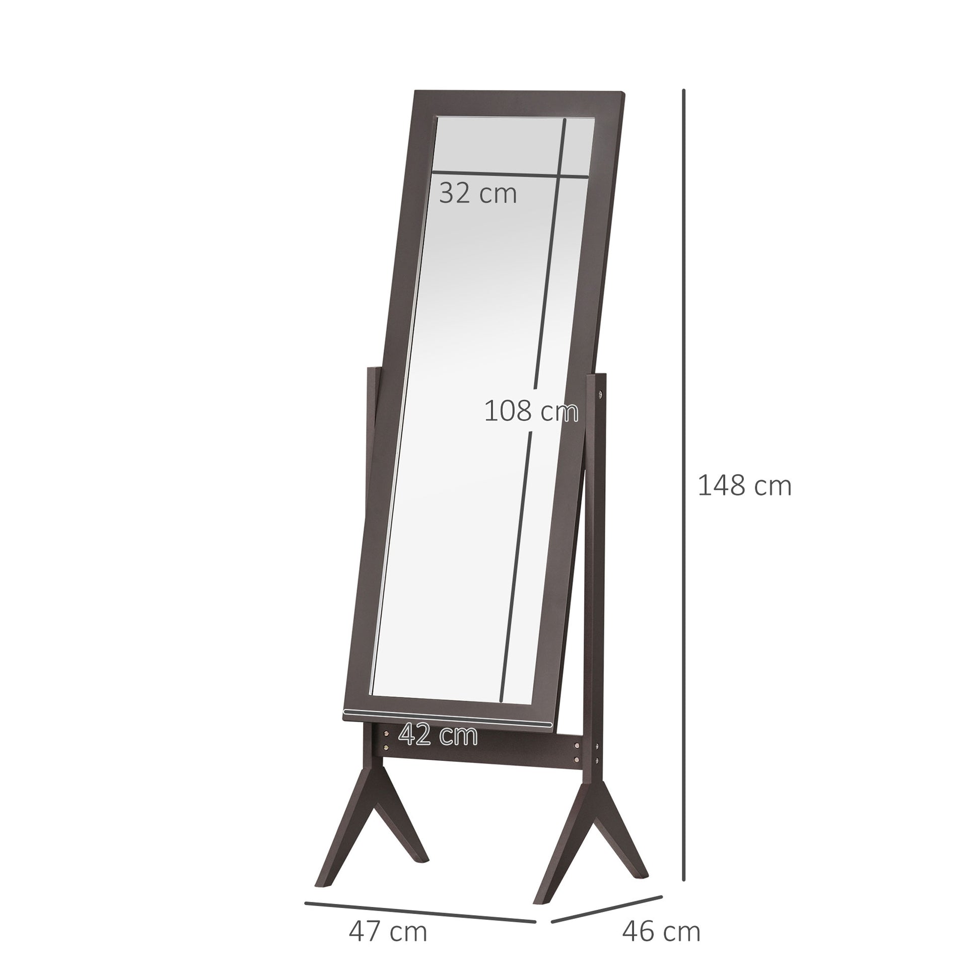 HOMCOM Freestanding Dressing Mirror Bedroom Tall Adjustable Angle 148x47cm Brown