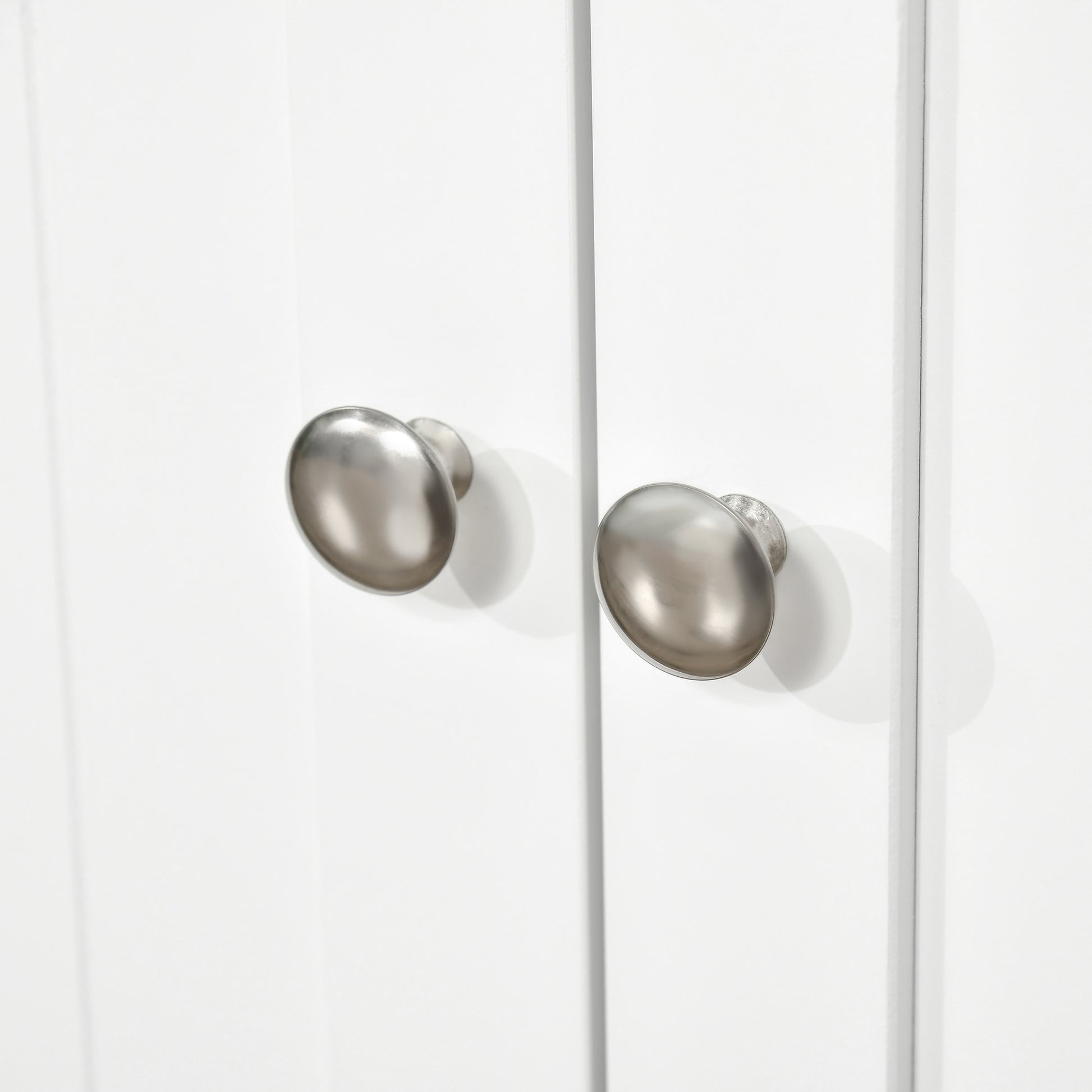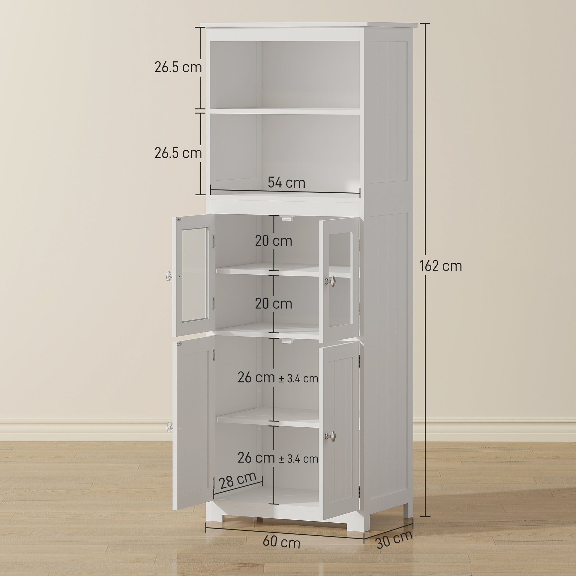 Need some more storage options in the kitchen? This HOMCOM pantry cupboard is here to help. A clean, white design makes this storage unit versatile, with beadboard door panels, glass panels and metal handles for a sleek look. Storage comprised of two shelves, glass door cabinet, and bottom double-door cabinet - plenty of organisation, with mess out of sight.