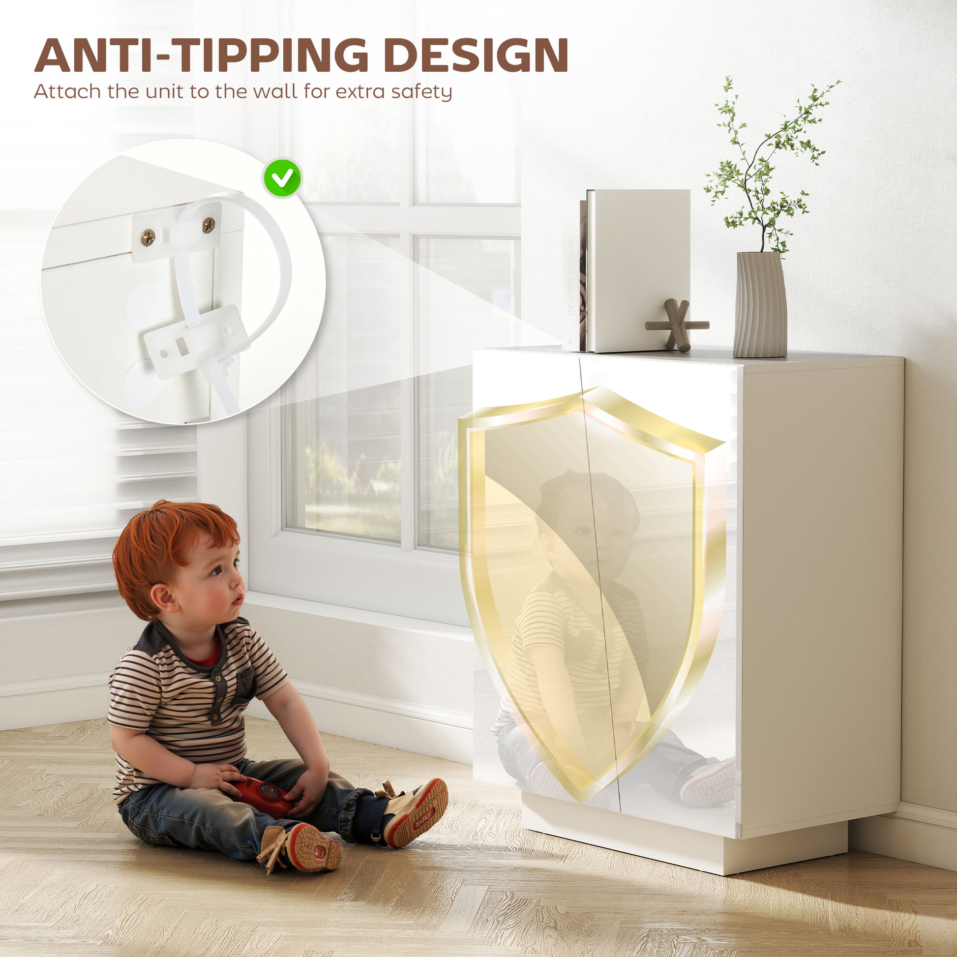 HOMCOM High Gloss Storage Cabinet, Freestanding Storage Cupboard with Adjustable Shelves for Living Room, Bedroom, Hallway, White