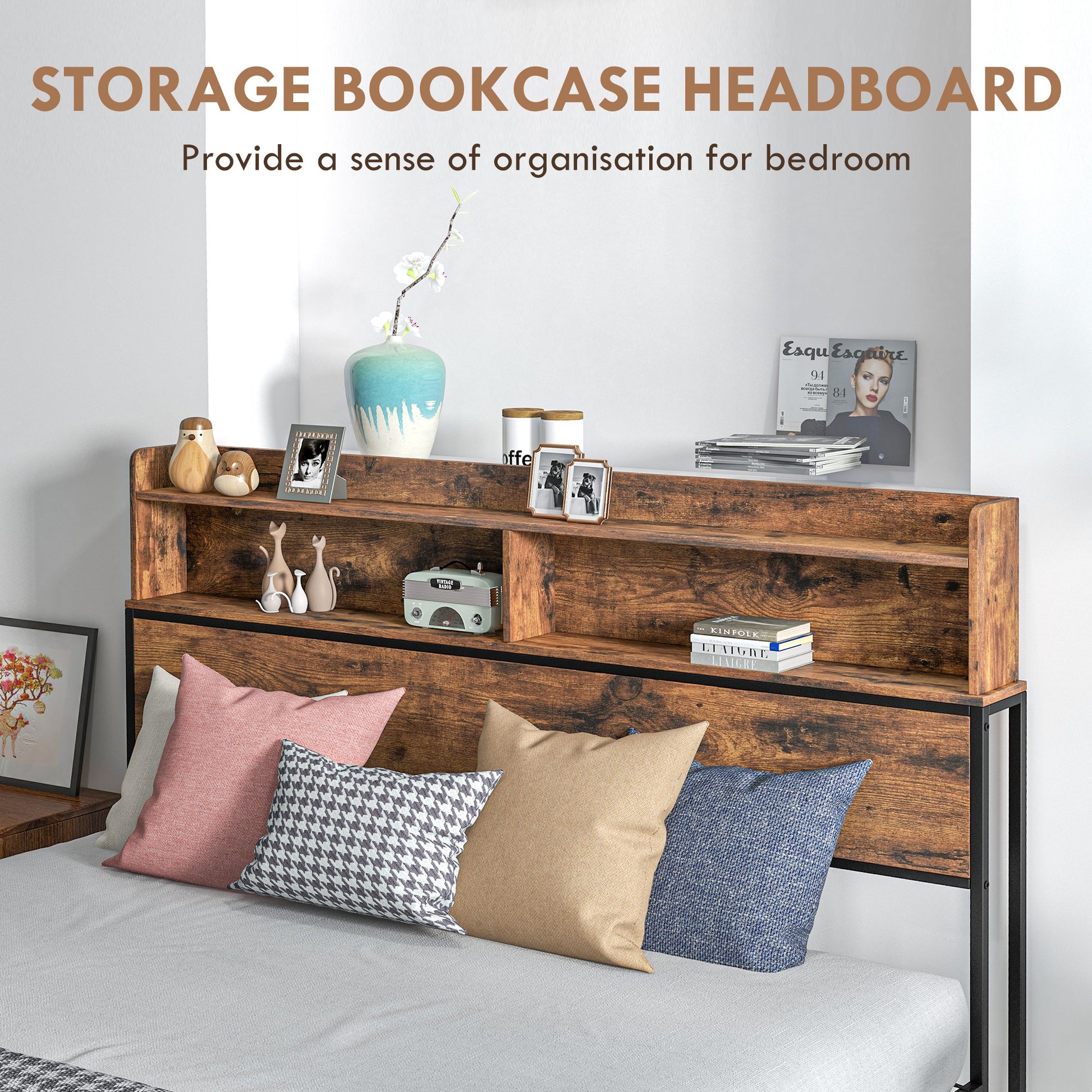 HOMCOM Industrial King Bed Frame, 5.2FT Steel Bed Base with Storage Headboard, Footboard, Slatted Support and Under Bed Storage, 158 x 222cm, Rustic Brown
