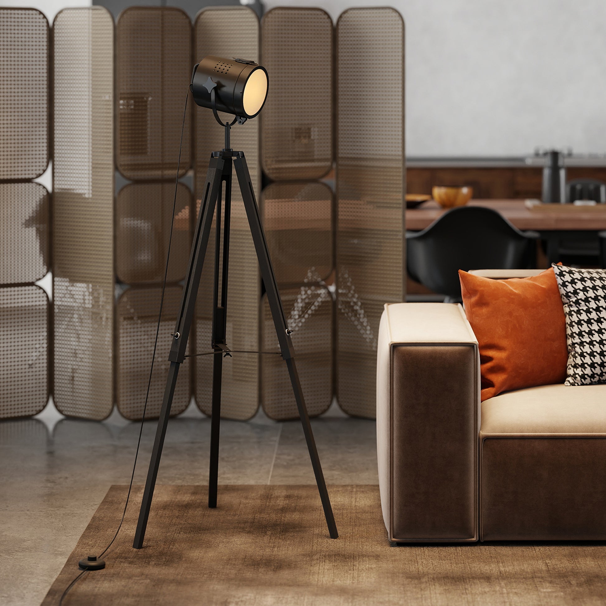 This HOMCOM industrial floor standing lamp pairs solid pine wood legs with a vintage searchlight-style shade for a bold, stylish look. The foldable tripod base offers easy storage and transport. With adjustable height and lampshade, it lets you direct light exactly where needed—great for bedrooms, living rooms, studies and more.