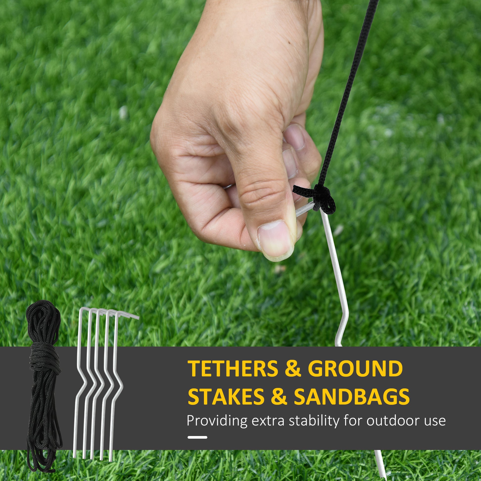 - Accessories included: 2 sets of LED lights, 5 spikes, 3 strings
