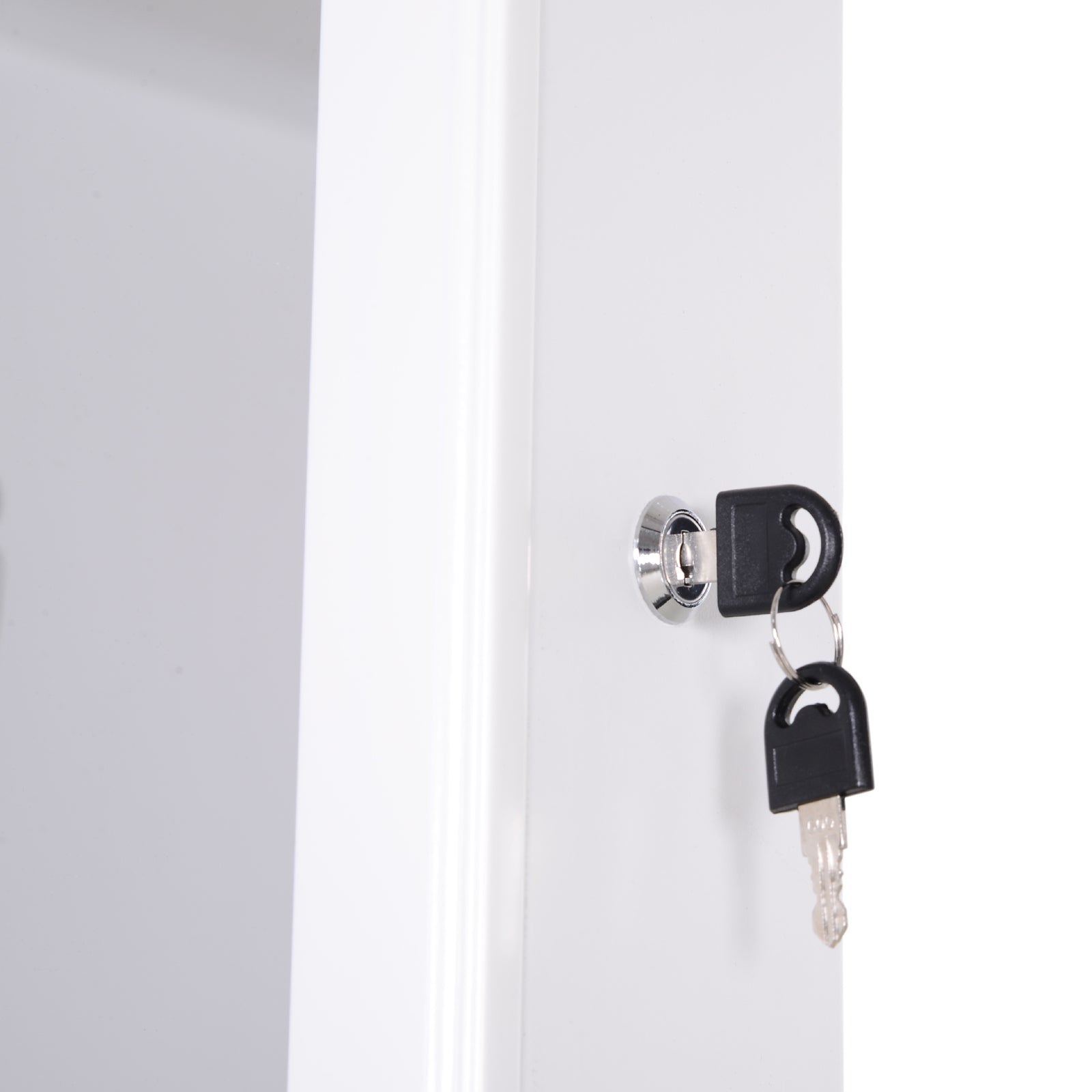 Infuse elegance and easy organisation into your everyday routine with this mirrored jewellery cabinet from HOMCOM. Its freestanding design combines a long and adjustable-angle full-length mirro. It is here where there is a significant amount of space for storing all your jewellery, make-up, perfumes.