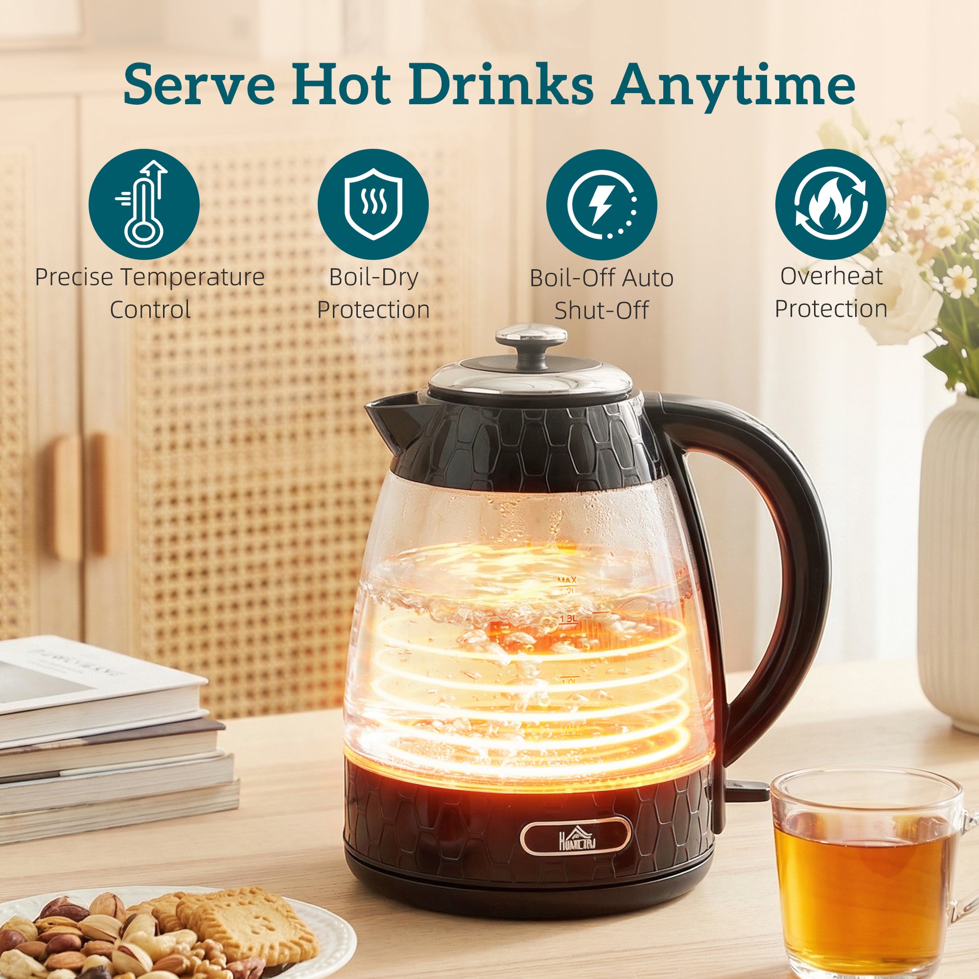- Auto shut-off and boil-dry protection ensure safe operation