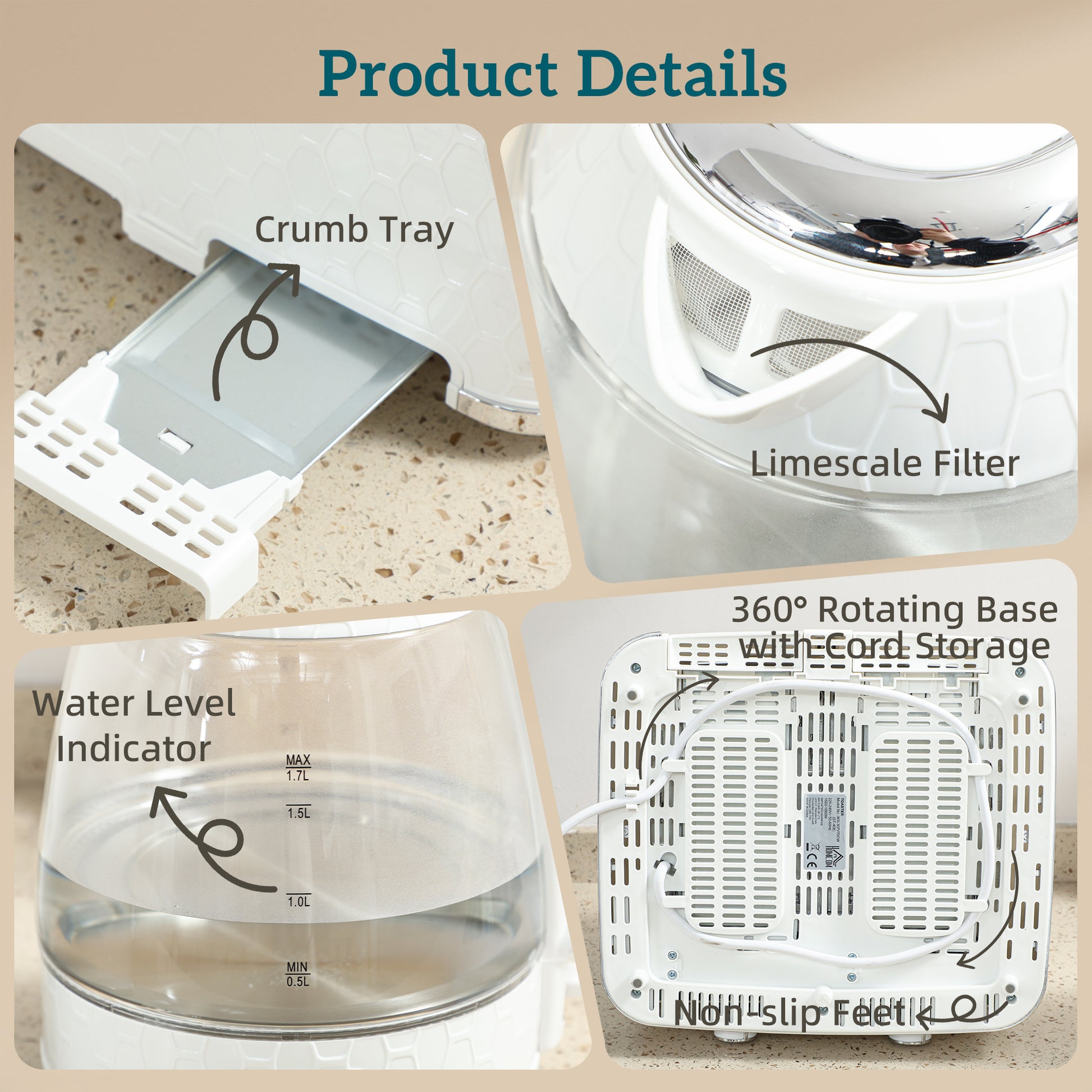 - Four-slice toaster and kettle ensure breakfast ready in one go