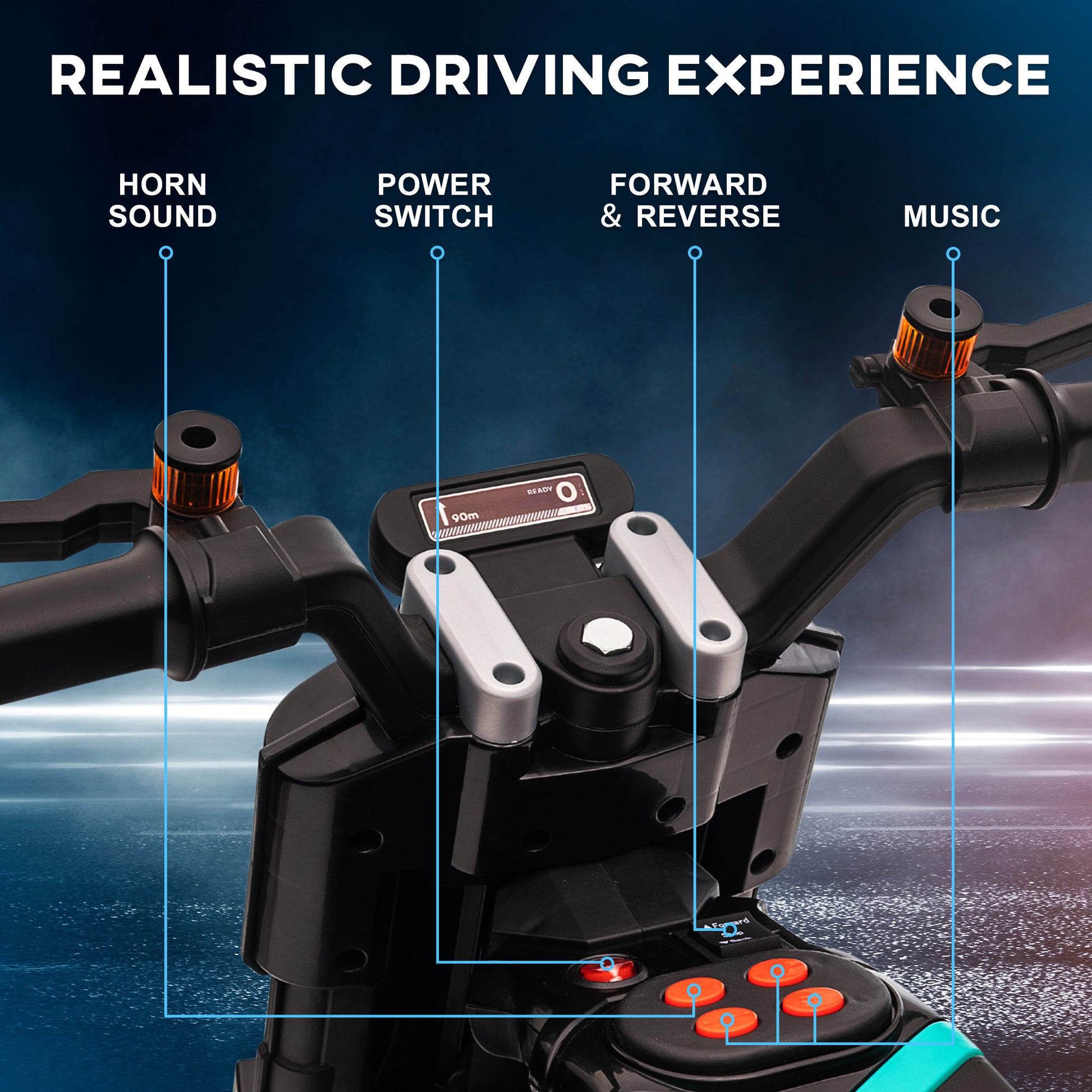 HOMCOM Kids Electric Motorbike with Siren, Horn, Headlights, Music, Training Wheels, for Ages 3-5 Years - Black