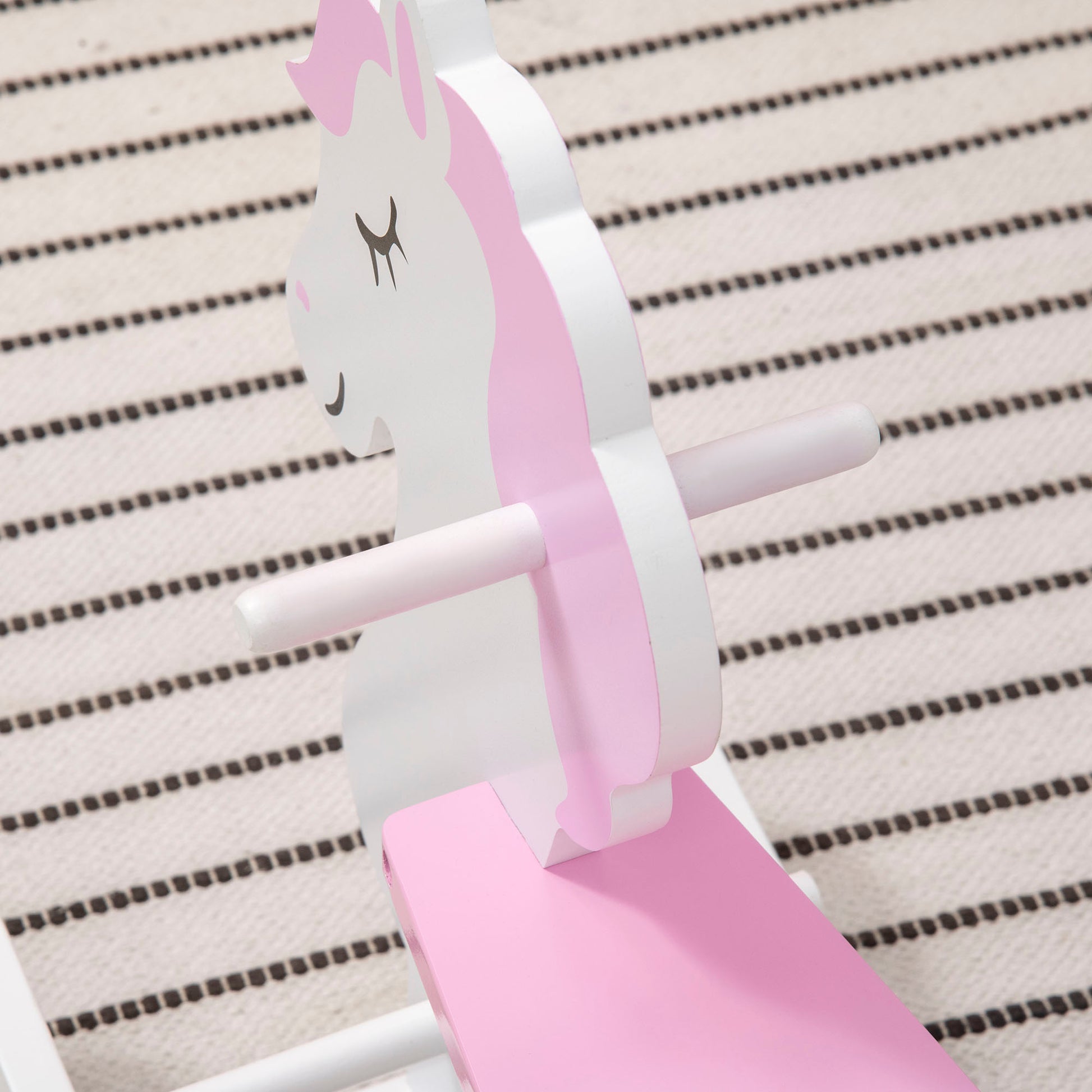 This HOMCOM kids rocking horse is a classic, providing hours of fun. Its unicorn appearance is lively and vibrant, capturing your child's imagination as they play. When not in use, it makes a cute addition to their room. Made from sturdy pinewood and MDF, it stays strong as they rock back and forth, whilst the smooth surface and round edges keeps them safe. handlebars and pedals are included, so it's easy to get on and off without help – they can rock at any time, keeping them happy.