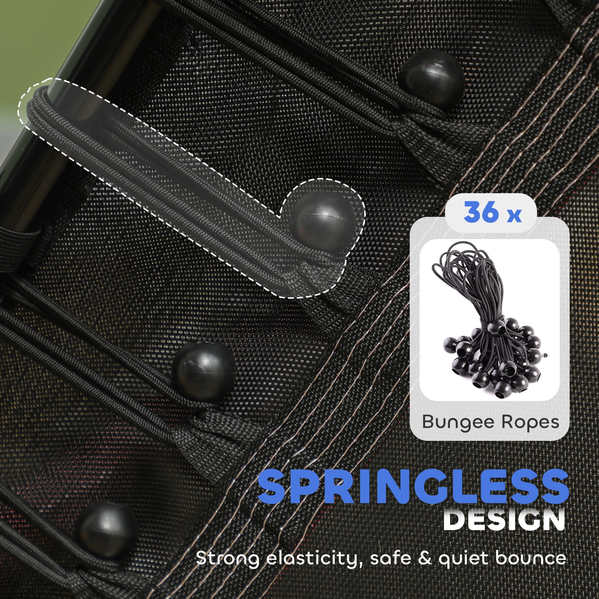 - 36 elastic ropes provide a soft, responsive bounce