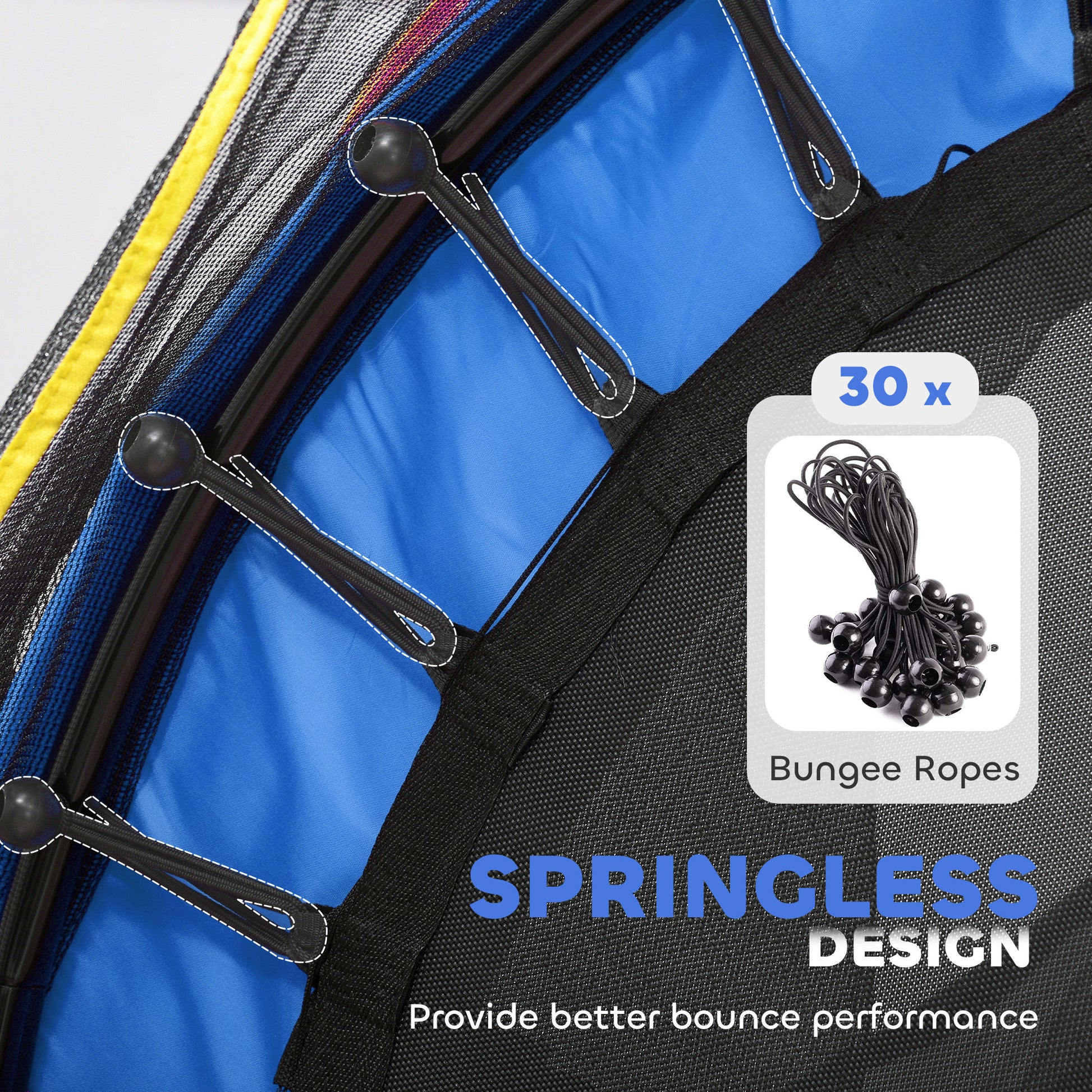 - A non-spring bungee with high elasticity, which is much safe for kids than metal springs